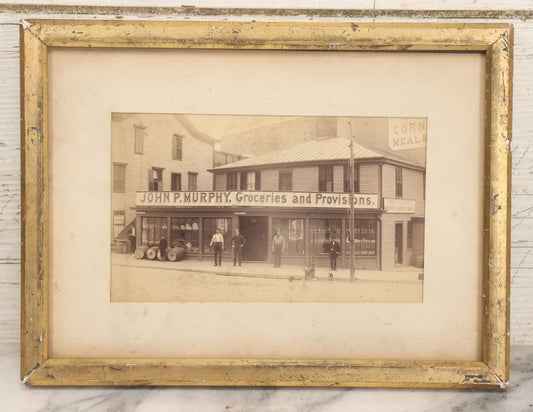 Lot 035 - Antique Occupational Photograph Depicting The Proprietors And Workers Of John P. Murphy Groceries And Provisions General Store, Located On West Main Street, Unknown City, Dog Visible In Photograph, In Period Frame, As Found, 11-1/2" x 8-1/2"