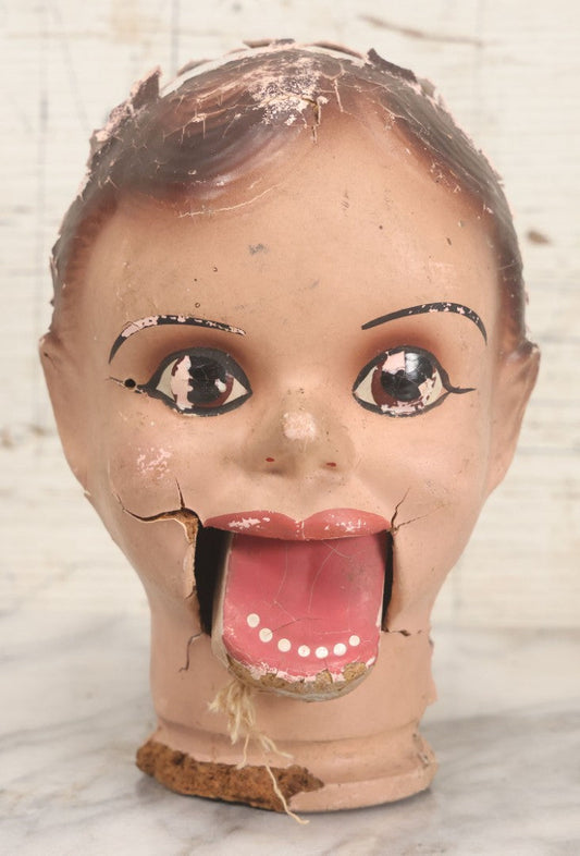 Lot 045 - Vintage Charlie Mccarthy Composition Ventriloquist Dummy Doll Head, Back Stamped K & S, With Severely Chipped Paint, Note Mouth Is Loose