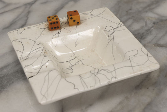 Lot 047 - Vintage Mid Century Porcelain Gamblers Ashtray With Modern Design And Glued Dice, Bottom Marked California