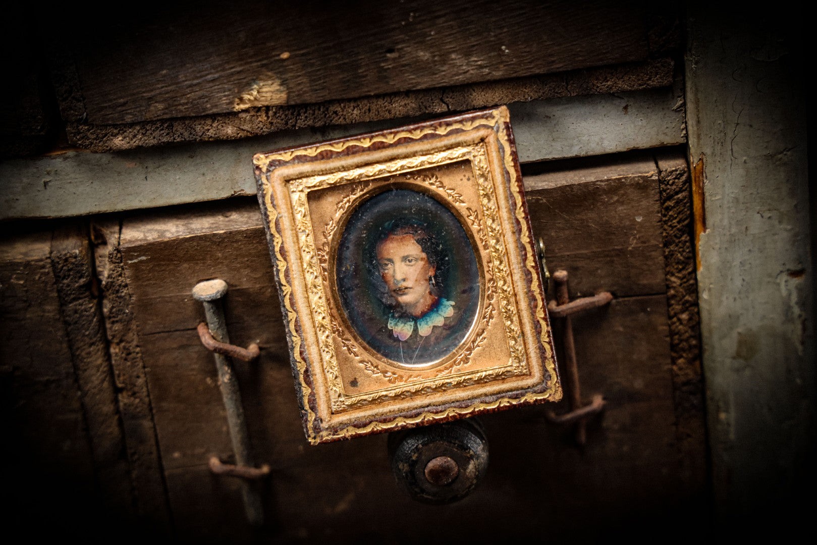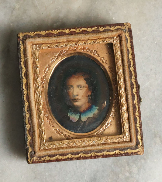 Lot 069 - Antique 1/16th Plate Daguerreotype Photograph Of Pretty Woman With Large Eyes And Lace Collar, Note Discoloration And Haloing On Photo