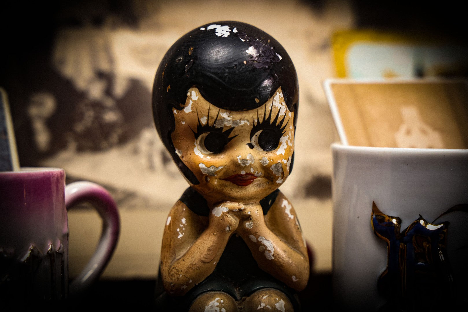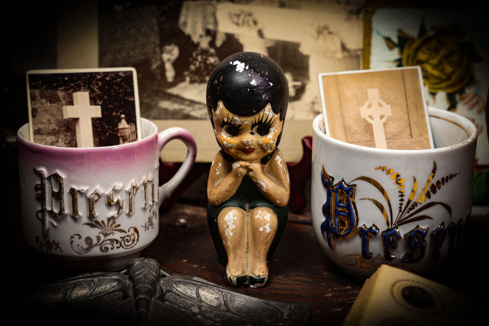 Sold For: Login to See Price Confirm BidLot 044 - Vintage Chalkware Kewpie-Style Crouching Flapper Doll With Black Hair And Green Dress[...]