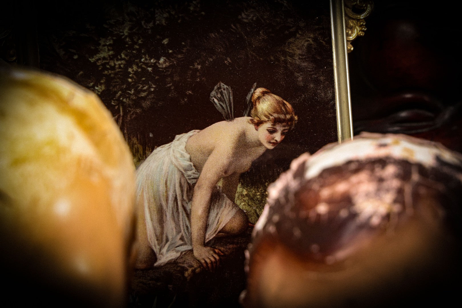Sold For: Login to See Price Confirm BidLot 033 - Antique Painted Over Photograph Of Oceanside Cliffs And Beach With Child Seated On Ro[...]
