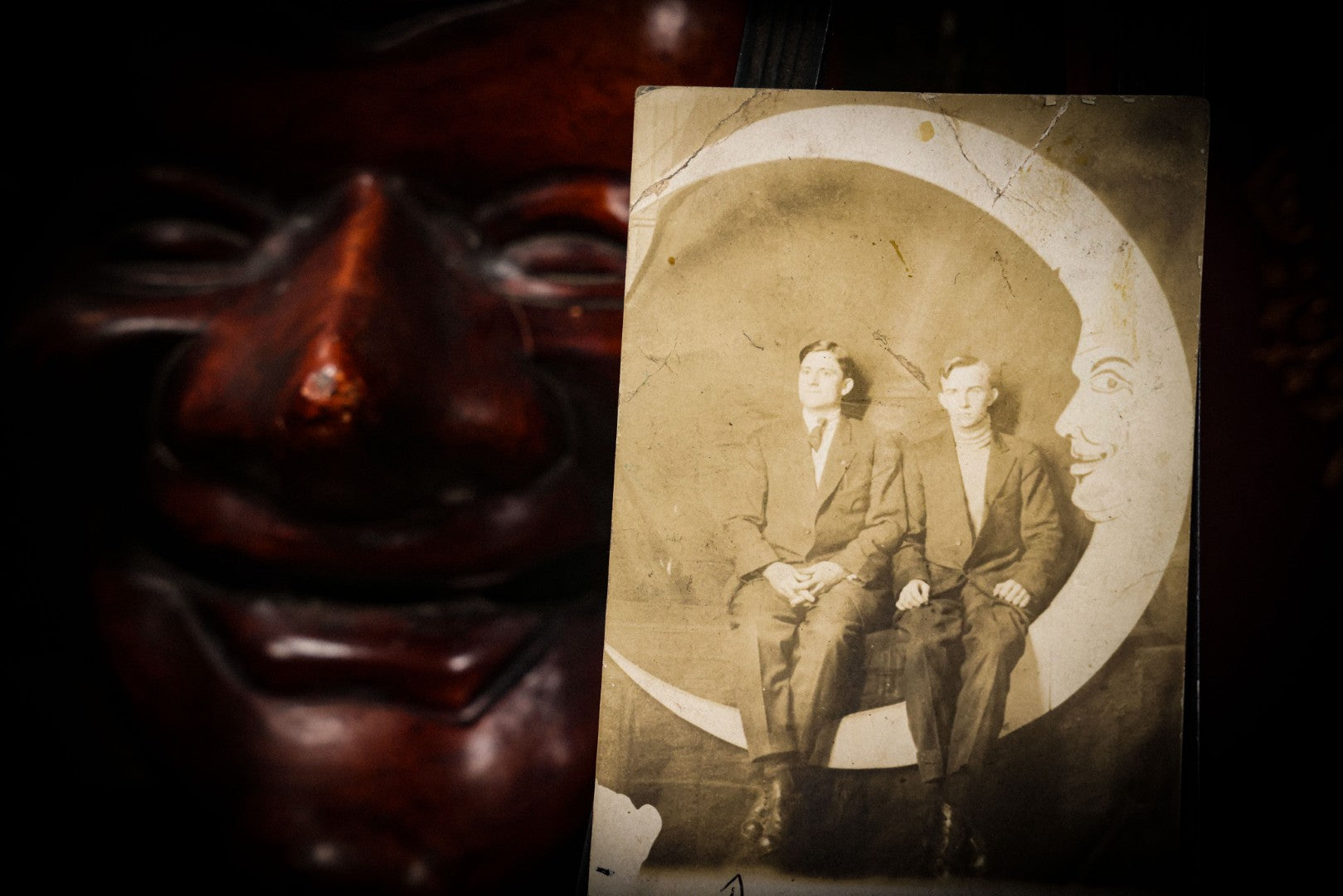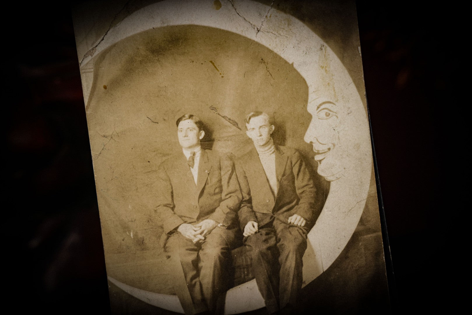Lot 072 - Single Antique Tintype Photograph Of Two Young Men Playing Cards And Drinking With Bowler Hats On Small Table