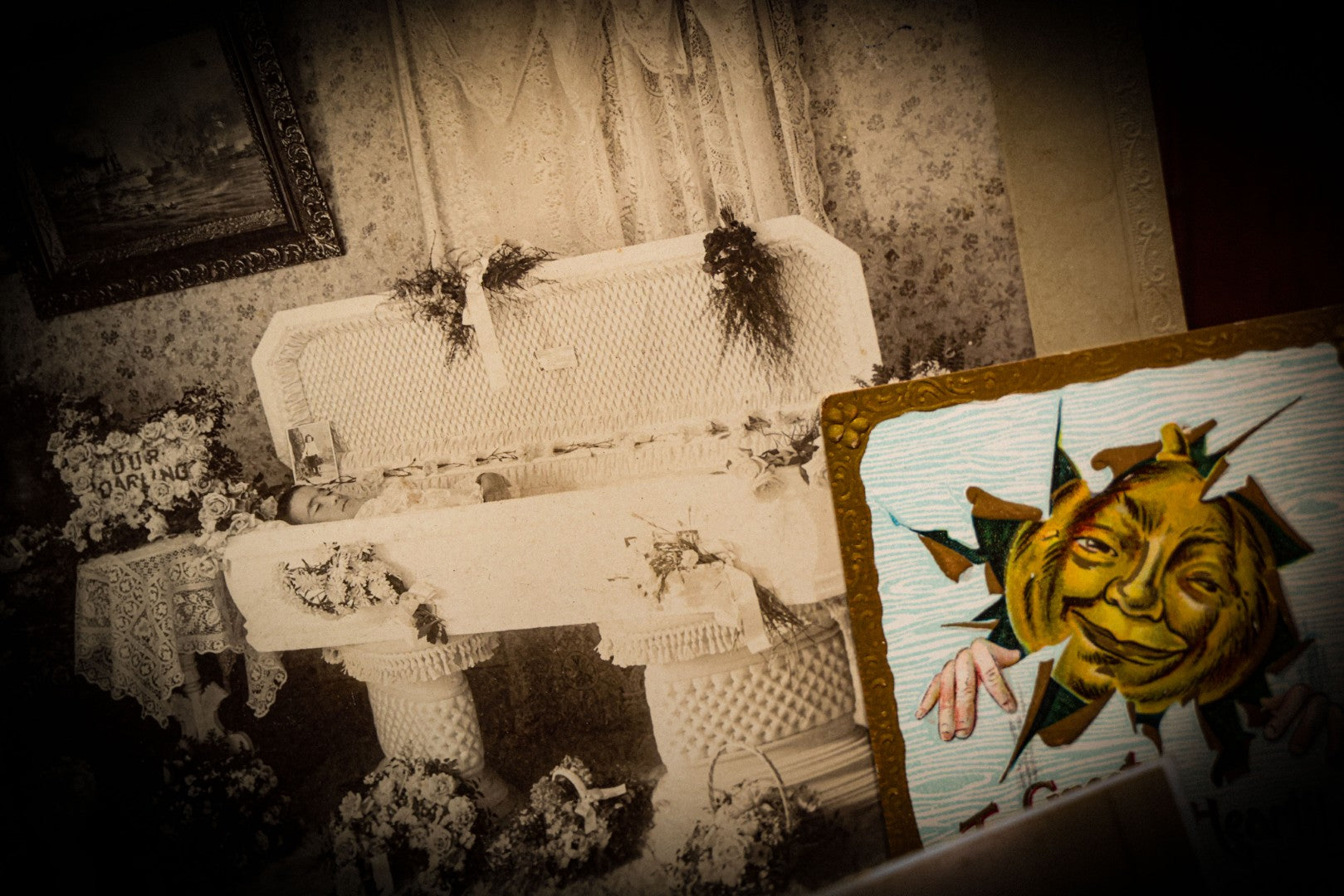 Sold For: Login to See Price Confirm BidLot 060 - Antique Boarded Post Mortem Funeral Photograph Of Young Boy In His Casket, With Vario[...]