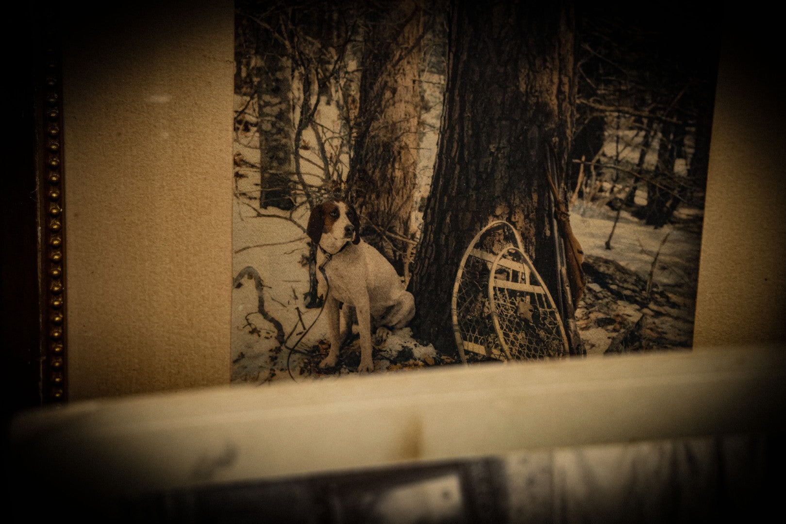 Sold For: Login to See Price Confirm BidLot 034 - Antique Hand Tinted Hunting Photograph With Hunting Dog Snowshoes And Rifle, Signed I[...]