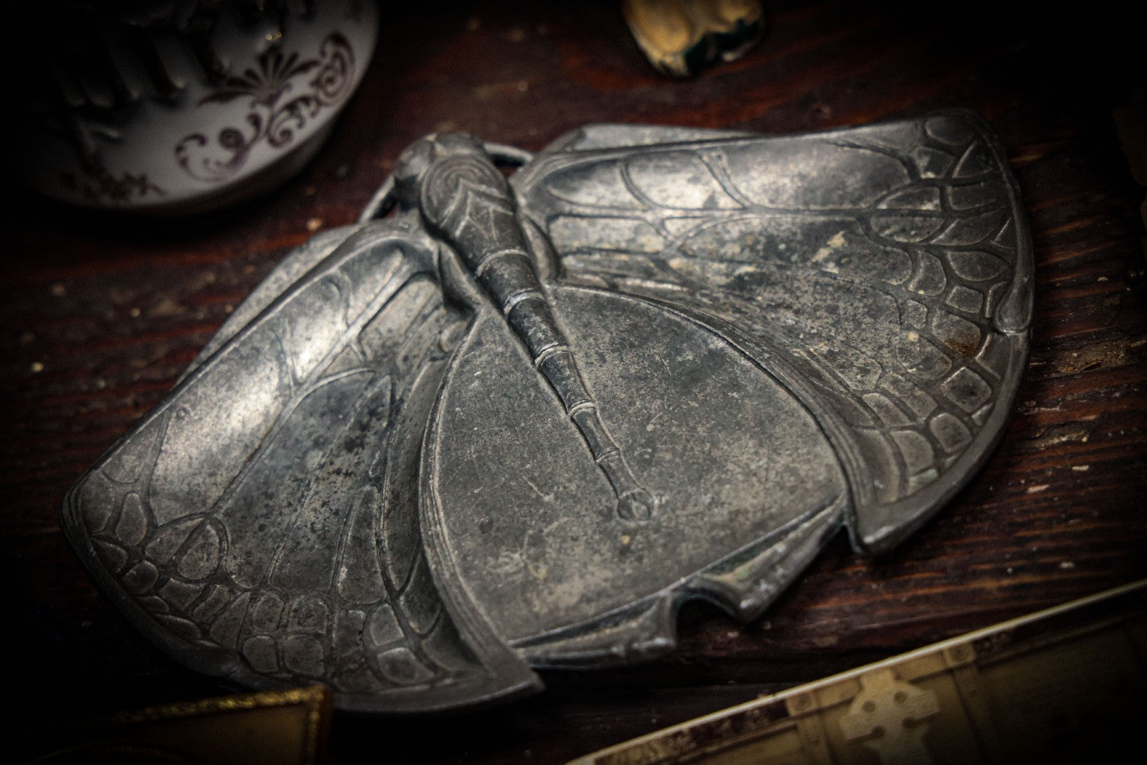 Lot 010 - Antique Art Nouveau Cast Metal Dragonfly Double Sided Trinket Tray