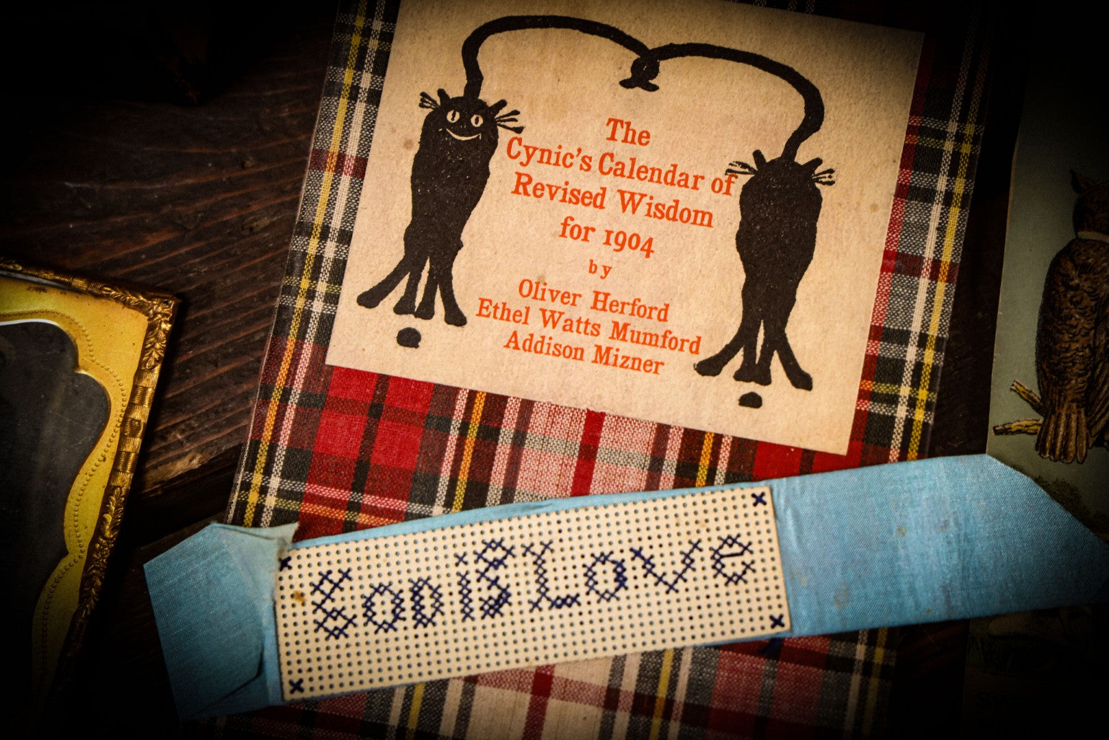Lot 059 - Antique Photo And Keepsake Album With Cabinet Card, Tintype, And C.D.V. Photos, Remembrance Card & Hair From Mrs. Laura E. Little, Hidden Mother Tintype With Scratched Out Face, Photo Of Back Of Woman's Hair, Textile Keepsakes, Pressed Foliage
