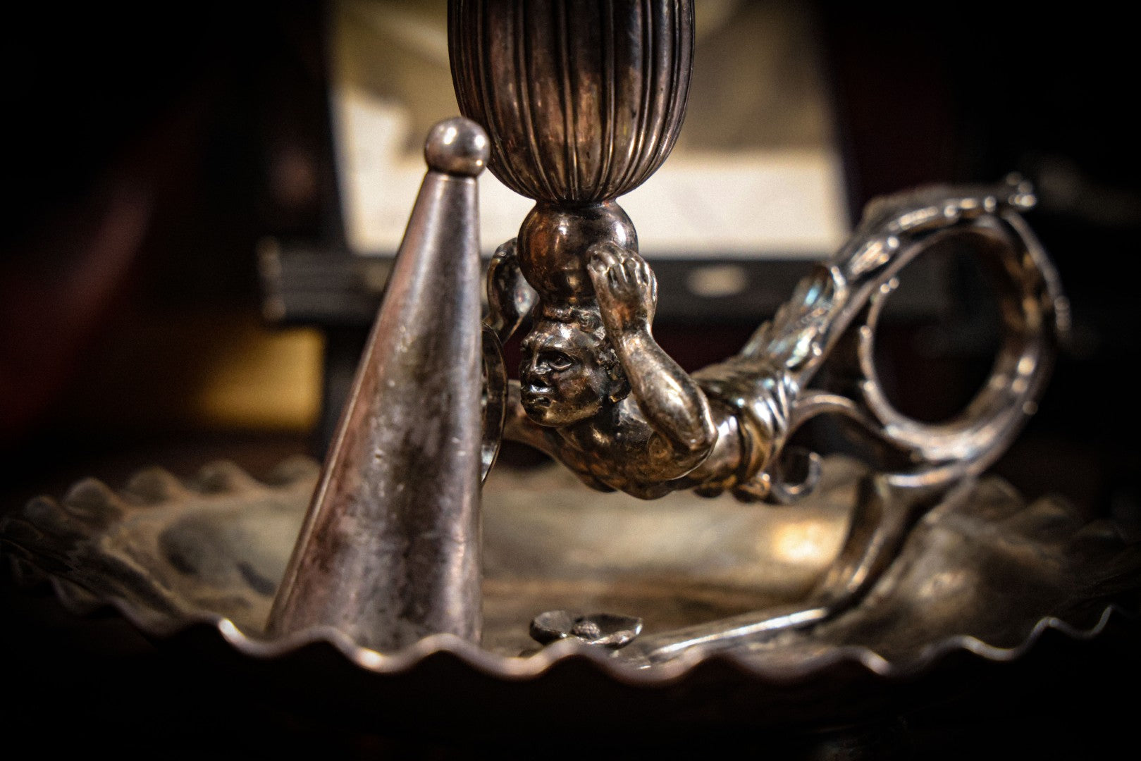 Sold For: Login to See Price Confirm BidLot 008 - Antique Silverplate Figural Candle Stand With Genie Motif, Manufactured By Wilcox Sil[...]