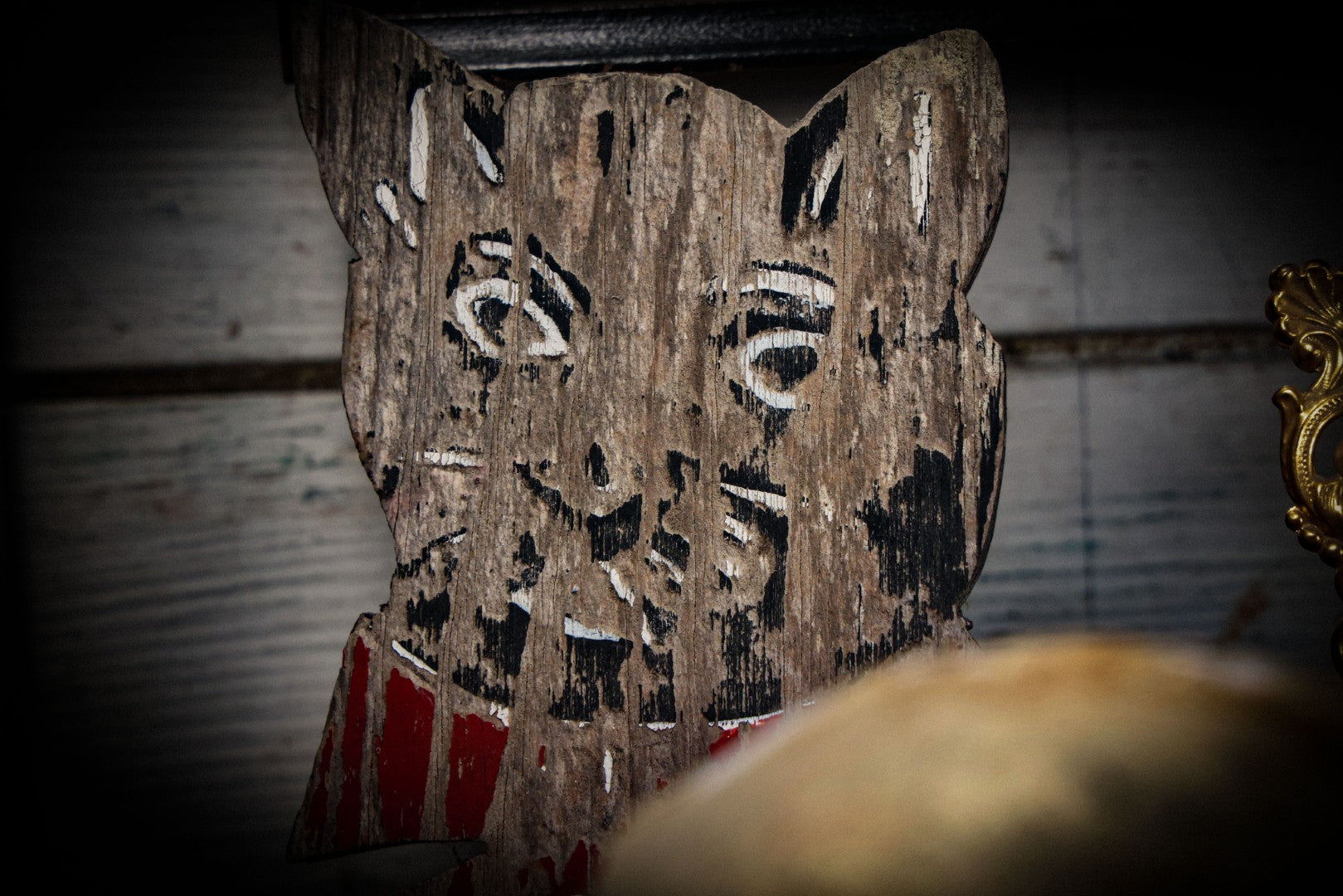 Sold For: Login to See Price Confirm BidLot 040 - Vintage Folk Art Hand Painted Black Cat With Red Bowtie Wood Lawn Ornament Cutout, Wi[...]