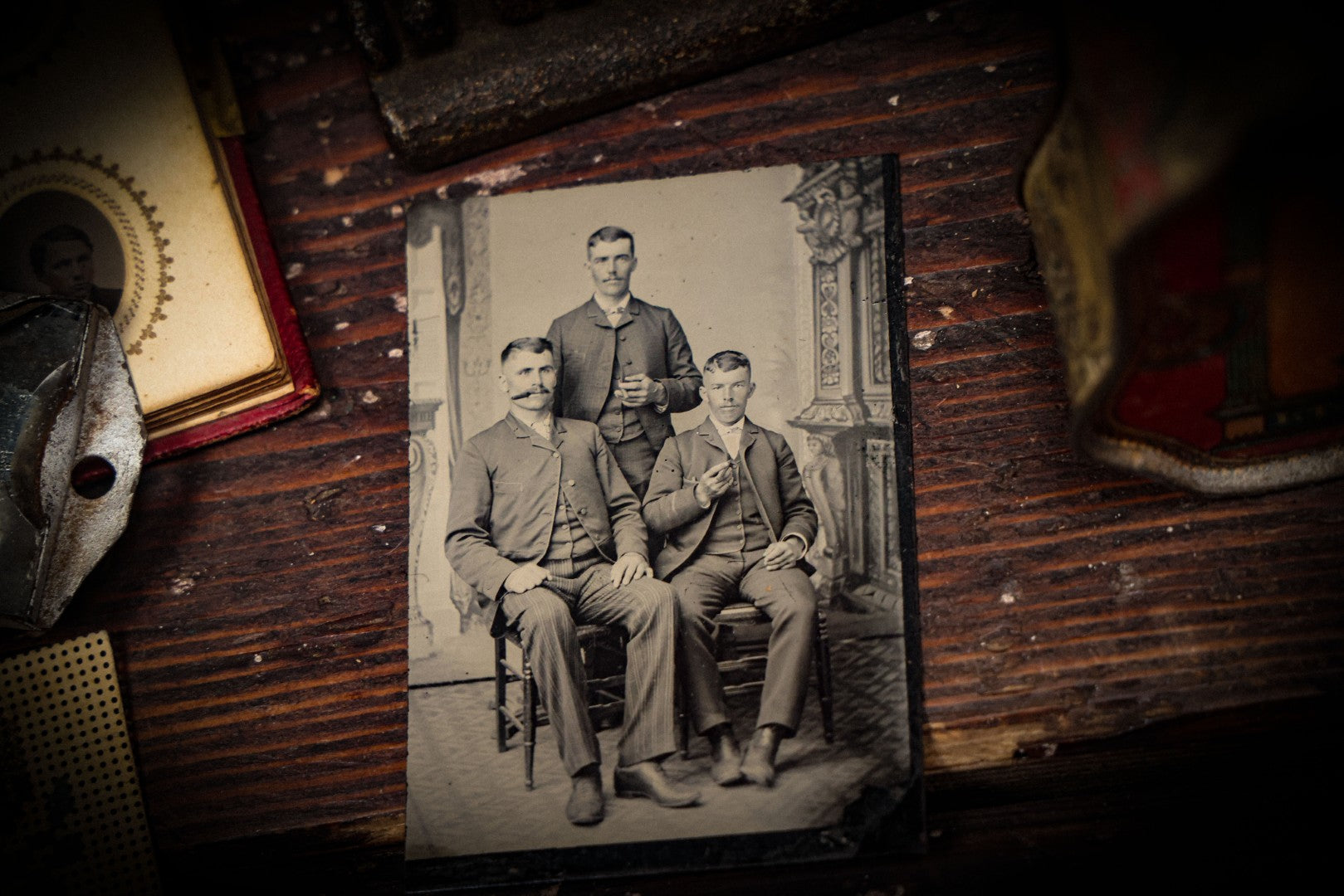 Sold For: Login to See Price Confirm BidLot 071 - Single Antique Tintype Photograph Of Three Men In Suits Smoking Cigars, Including Man[...]
