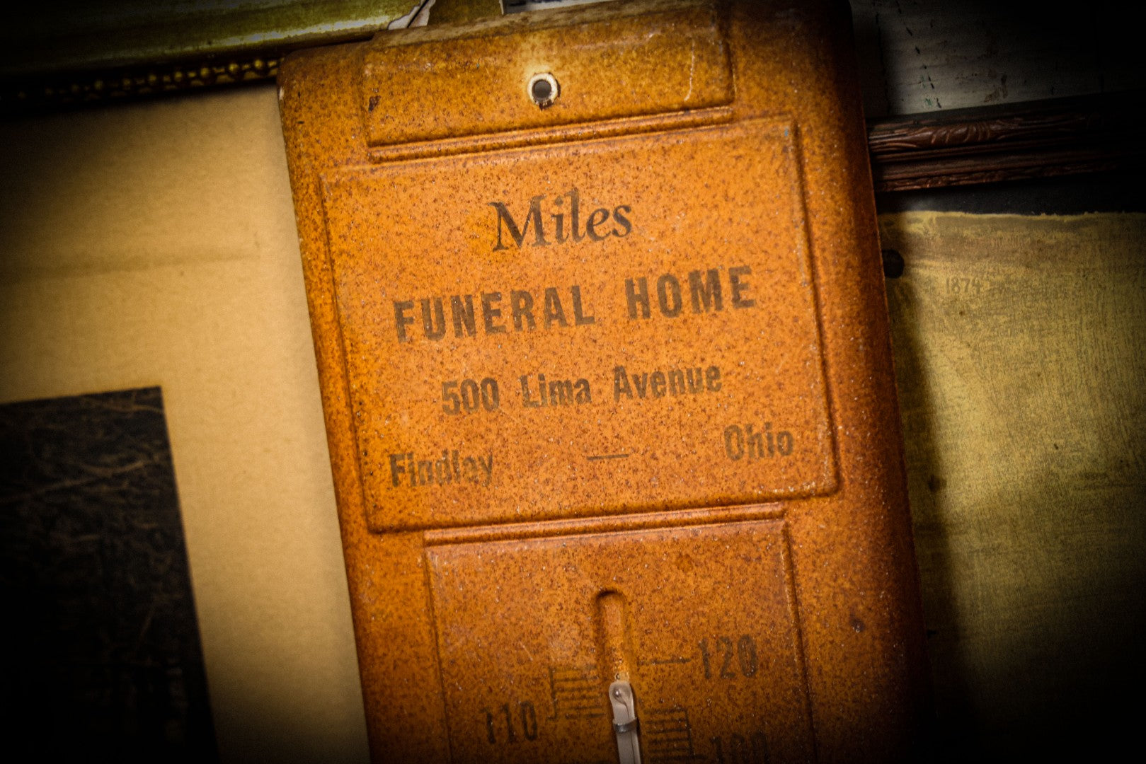 Lot 011 - Vintage Advertising Thermometer From Miles Funeral Home, Findlay, Ohio, Note Rust Throughout