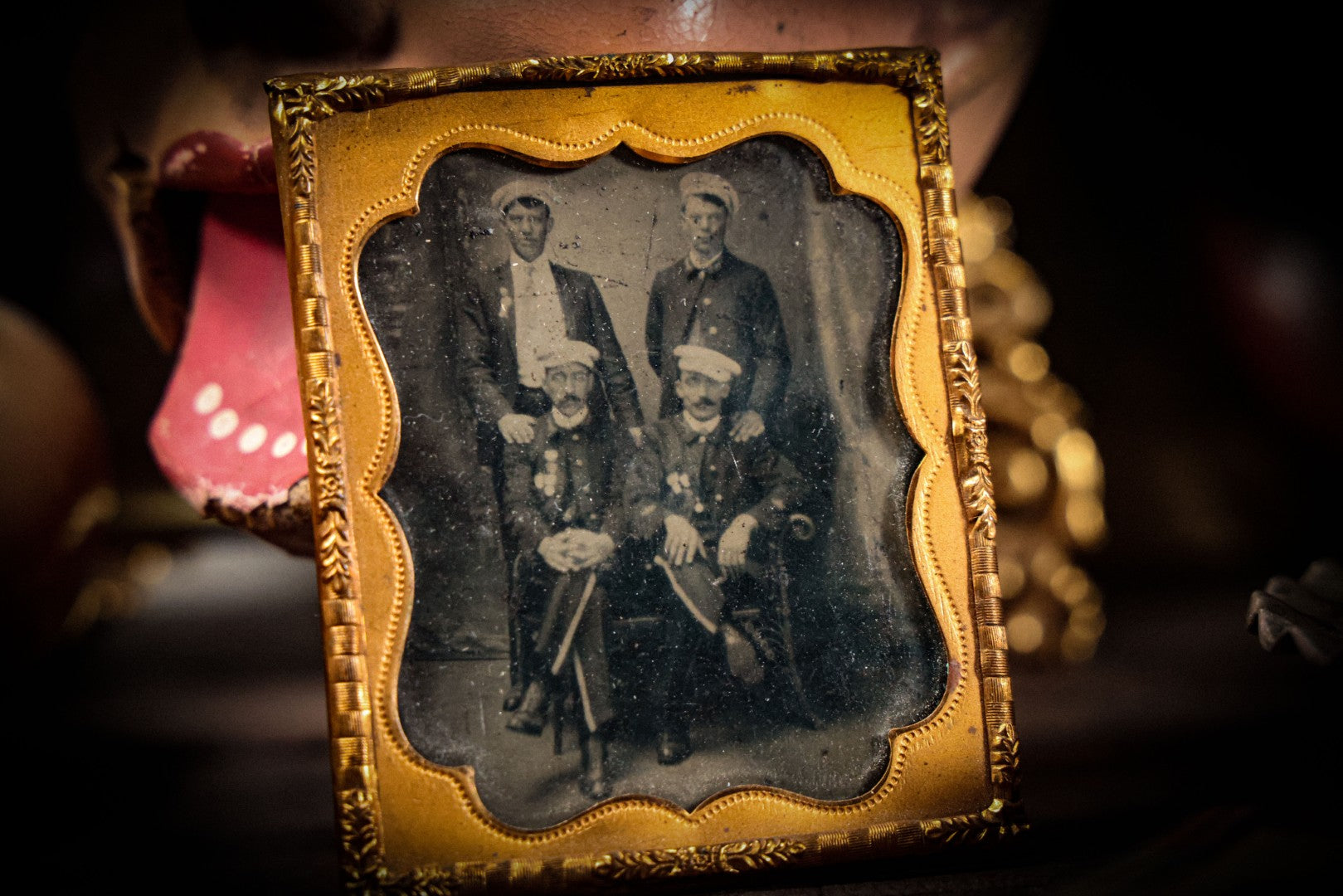 Sold For: Login to See Price Confirm BidLot 070 - Antique 1/6th Plate Tintype Photograph With Brass Mat And Preserver Of Four Well Dres[...]