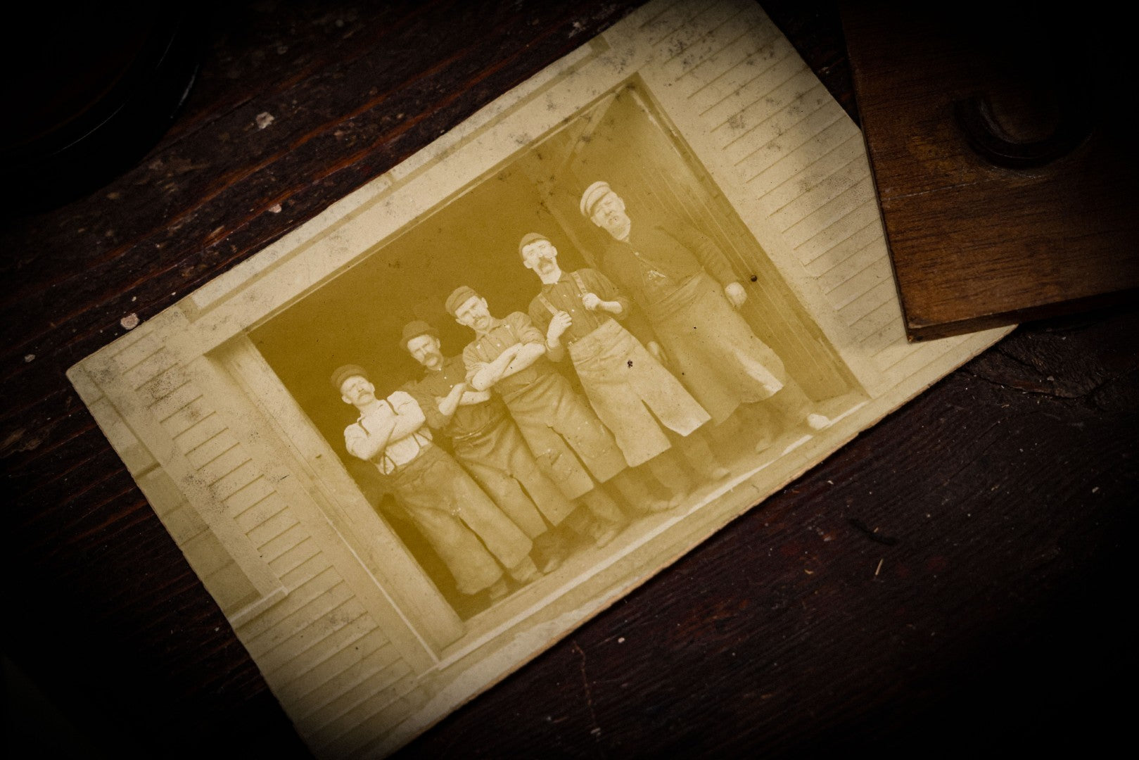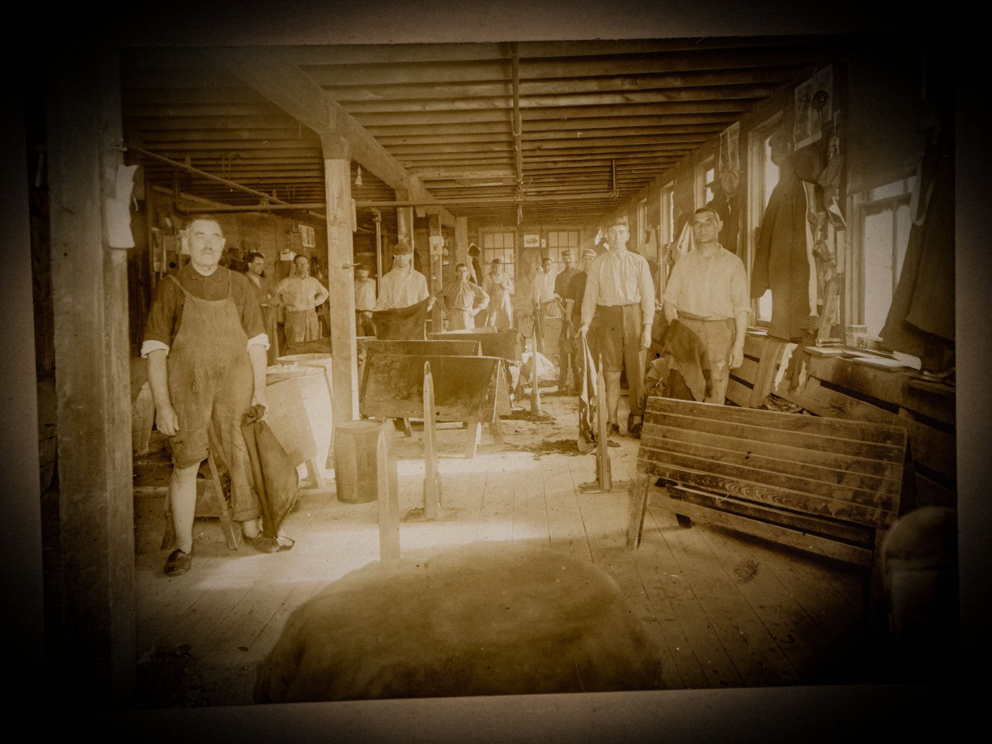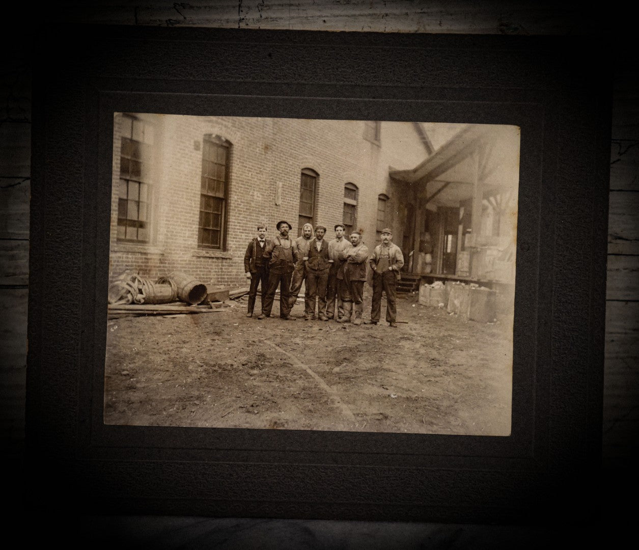 Sold For: Login to See Price Confirm BidLot 069 - Antique Boarded Occupational Photograph Of Group Of Workers, Likely In A Tannery