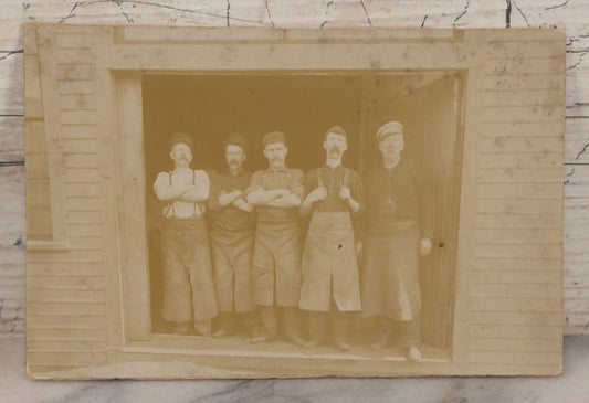Lot 070 - Antique Flush Mount Boarded Occupational Photograph Of Group Of Five Burly Workers Posing In A Doorway, James A. Phinney Identified, Boston Photographer Mark On Verso