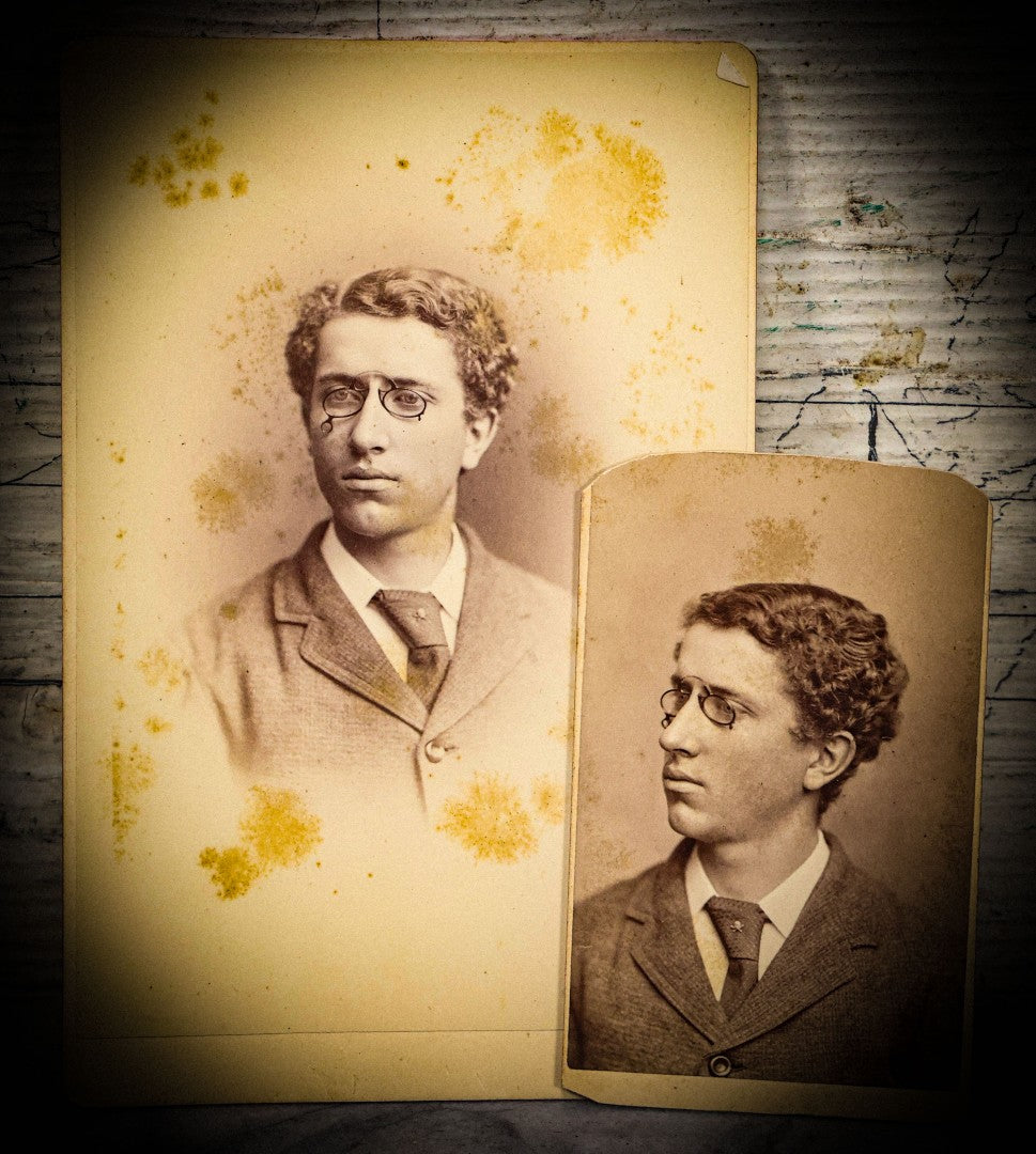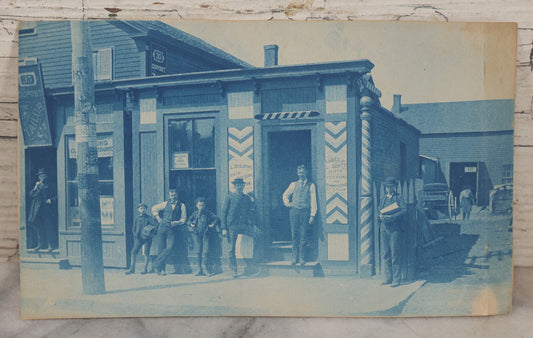 Lot 074 - Antique Unmounted Cyanotype Photograph Of The Workers And Proprietors Posing Outside Of The Storefronts Of L. DeLorme "Ladies And Gents Haircutting And Shampooing" And Dupont The Tailor, Harry Holland, Photographer, Worcester, Massachusetts
