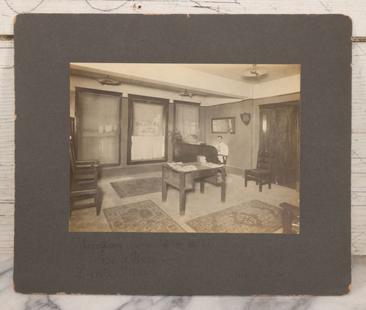 Lot 079 - Antique Boarded Occupational Photograph Of Reception Room Of The Office Of Dr. J.B. Ellis, D.M.D. (Doctor Of Medicine In Dentistry), Everett, Massachusetts, April 15, 1914