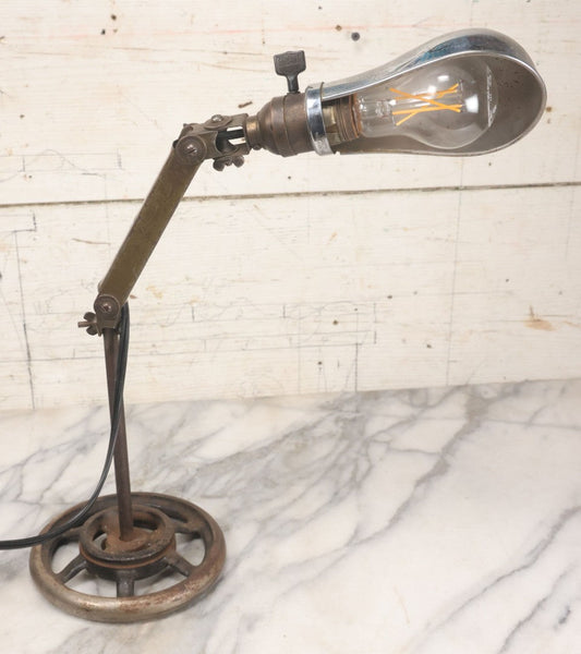 Sold For: Login to See Price Confirm BidLot 014 - Vintage Make-Do Industrial Posable Shop Lamp Fashioned From Spare Parts, Working Condition