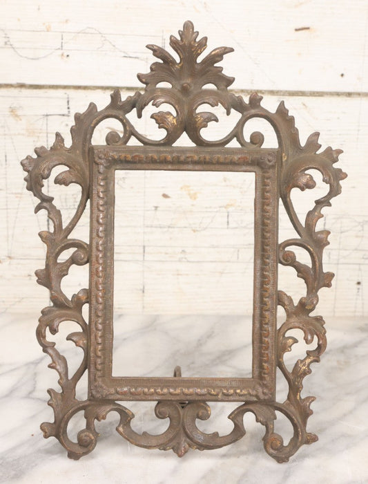 Lot 019 - Antique Ornate Gold Painted Cast Metal Rococco Style Frame With Folding Stand
