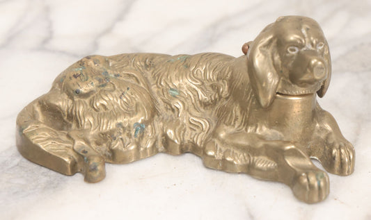 Lot 021 - Vintage Cast Brass Figural Dog Inkwell With Hinged Head Lid