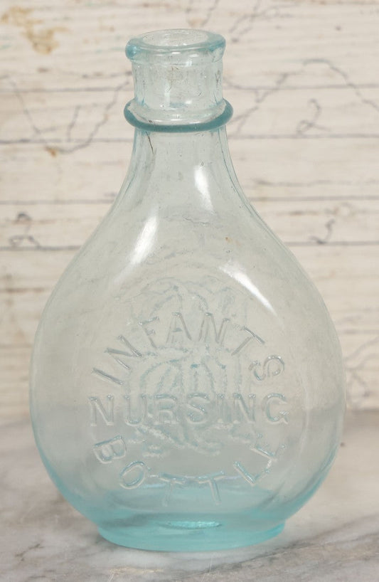 Lot 035 - Vintage Robins Egg Blue Glass Toothpick Or Match Holder With Hand Motif, 3-1/2" Height