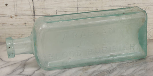 Lot 033 - Antique Stewart D. Howe's Arabian Tonic Blood Purifier Patent Medicine Apothecary Glass Bottle, New York, With Embossed Lettering, 9-3/8" Height