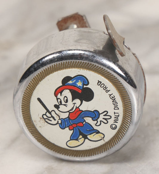 Lot 055 - Vintage Mickey Mouse Magician Chrome Bicycle Bell With Handlebar Clamp, Copyright Walt Disney Productions, Made In Germany, Ringer Functions