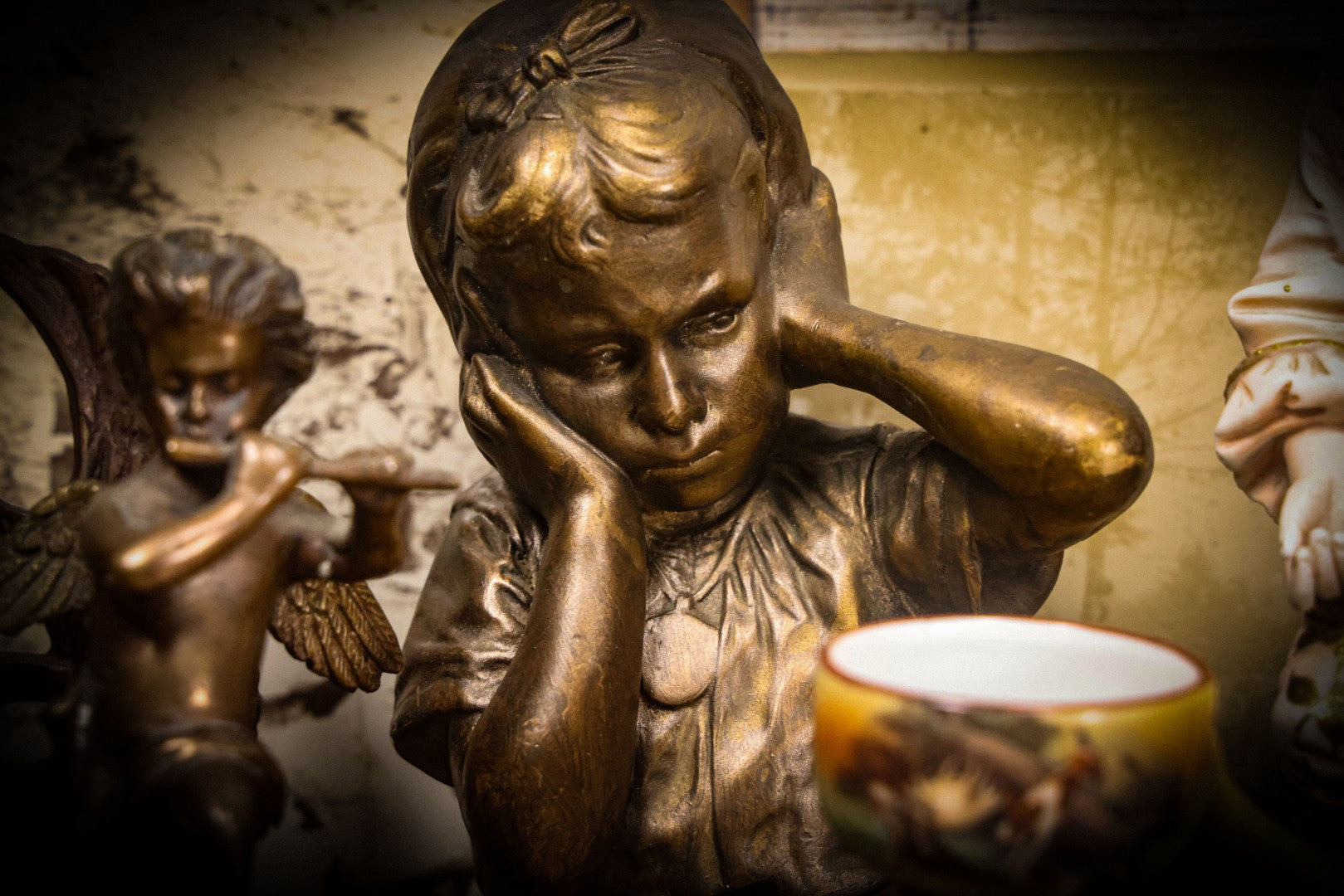 Sold For: Login to See Price Confirm BidLot 041 - Vintage Bronze Painted Chalkware Bust Statue Of Little Girl Covering Her Ears After E[...]