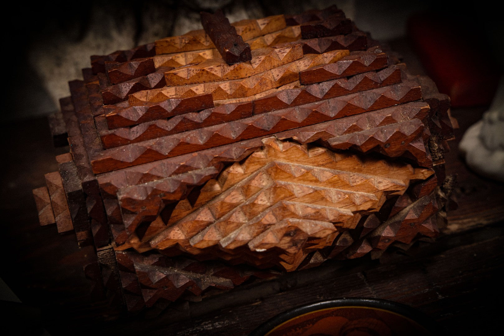 Sold For: Login to See Price Confirm BidLot 005 - Vintage Hand Carved Folk Art Tramp Art Wooden Storage Box With Lid And Feet