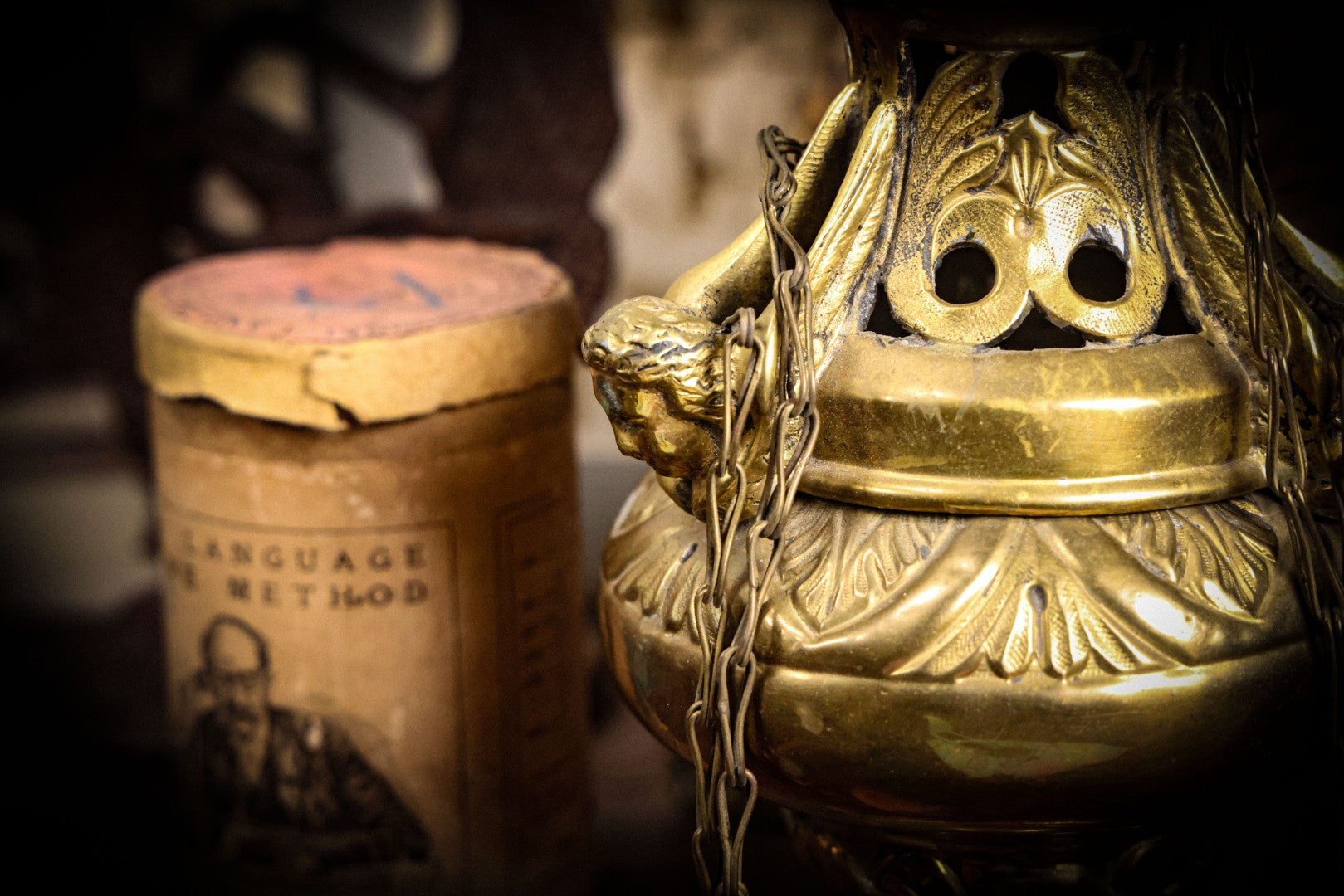 Sold For: Login to See Price Confirm BidLot 015 - Vintage Brass Church Censer Incense Burner With Cherub Figureheads, Hanging Chains, C[...]