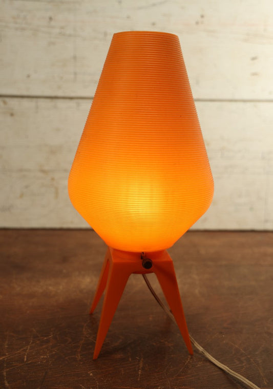 × CLOSESold outLot 048 - Vintage Mid-Century Modern Beehive Accent Lamp, Blow Mold Plastic, Orange Color, With Four Foot Plastic Orange Base, 15-1/2" Tall