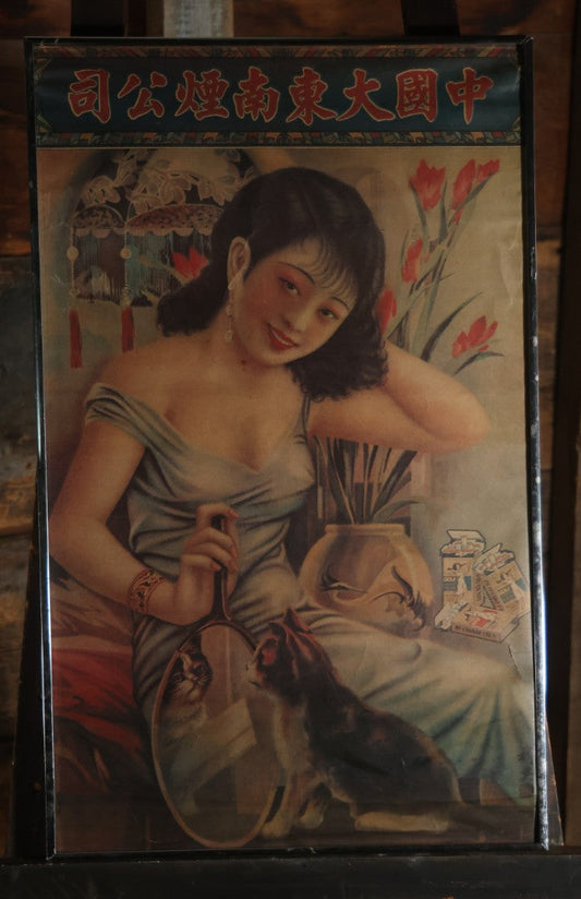 Vintage Oversized Print On Linen, “Psyche With A Butterfly,” After Wilhelm Kray (German, 1828–1889), 33" x 52"