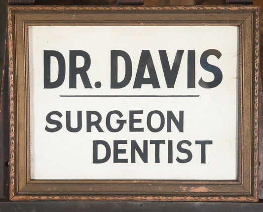 Antique Dr. Davis Surgeon Dentist Hand Painted Sign On Paper, In Frame, 18-1/2" x 14-1/2"