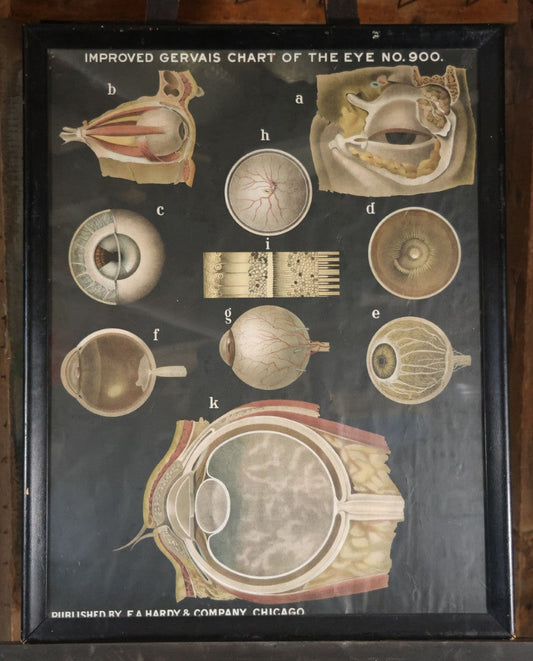 Antique Improved Gervais Chart Of The Eye No. 900 Anatomy Poster, Published By F.A. Hardy & Company, Chicago, In Frame, 29-3/8" x 37-3/8"