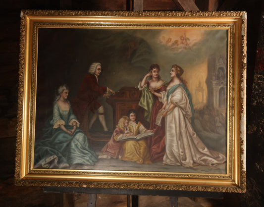 Oversized Oil On Canvas Folk Art Academic Allegorical Painting, After "Greece On The Ruins Of Missolonghi" (1826) By French Painter Eugène Delacroix, In Custom Made Frame, Note Heavy Wear, 40-1/8" x 61-5/8"