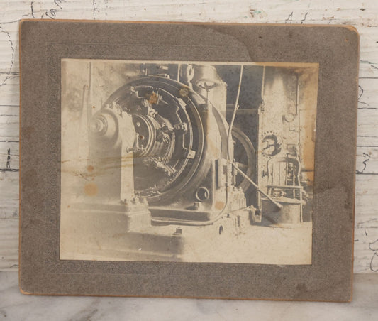 Lot 138 - Antique Boarded Photograph Of Large Hammer Machinery Display With Two Workers, Related To Caldwell Harness Exhibit At World's Fair, With Detailed Manuscript Note On Verso