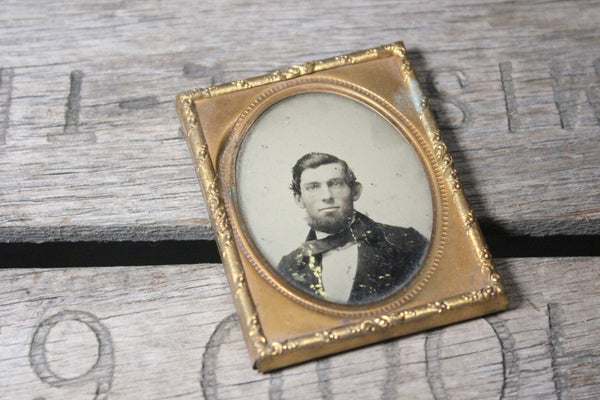 Lot 151 - Antique Box Lot Of Fifteen “Pocket Kodak” Miniature Boarded Photographs Including Dog On Stool, Boys Smoking Pipes, And Man In Workshop, With Camp Alger Flag Pin And American Views Co. Trade Card In John D. Cutter & Co. Chromolithograph Box