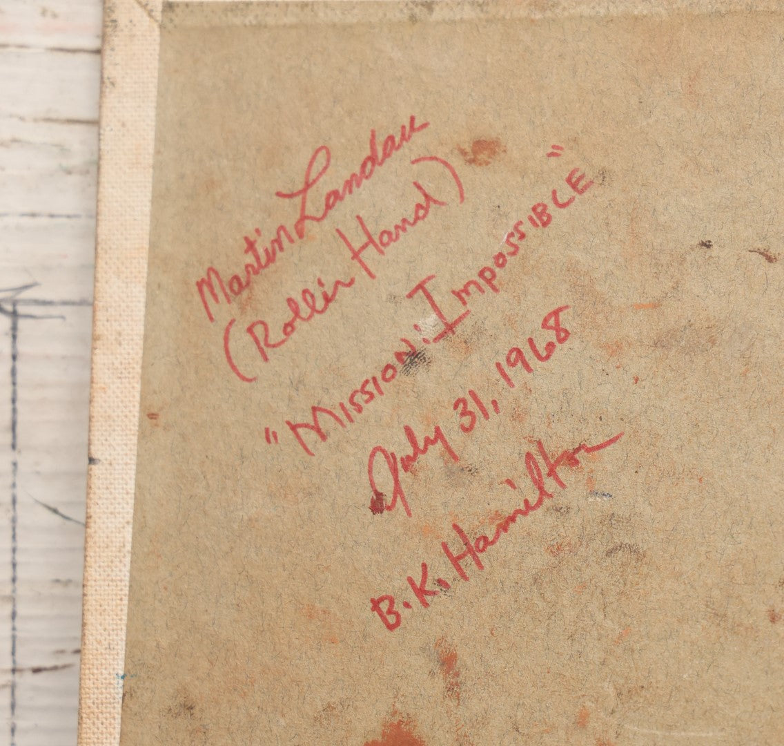 Lot 022 - Actor Martin Landau As Rollin Hand In "Mission: Impossible" (1966) Original Painting On Board, Artist Signed By Brian K. Hamilton, Dated 1968, 12" x 16"