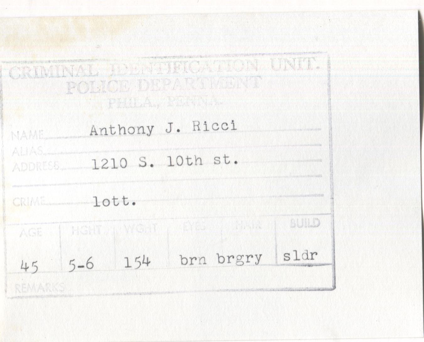 Anthony J. Ricci Mugshot - Arrested on 6/13/1963 for Illegal Lottery