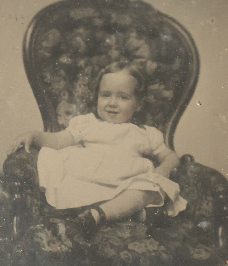 Your absentee bid for Lot 083 - Antique 1/6th Plate Ruby Ambrotype Photograph Of A Smiling Toddler Little Girl In Chair was successfully submitted—thank you for bidding with us!