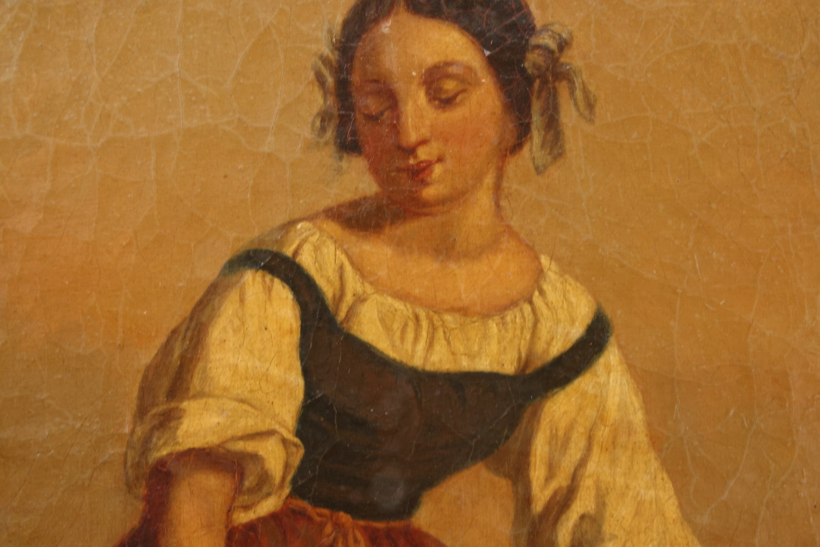 Your absentee bid for Lot 001 - Antique 19th Century Genre Painting Depicting Idyllic Peasant Life, Woman Gathering Water, Child Playing Fetch With Dog, In 20th Century Frame, As Found, 21" x 25" was successfully submitted—thank you for bidding with us!