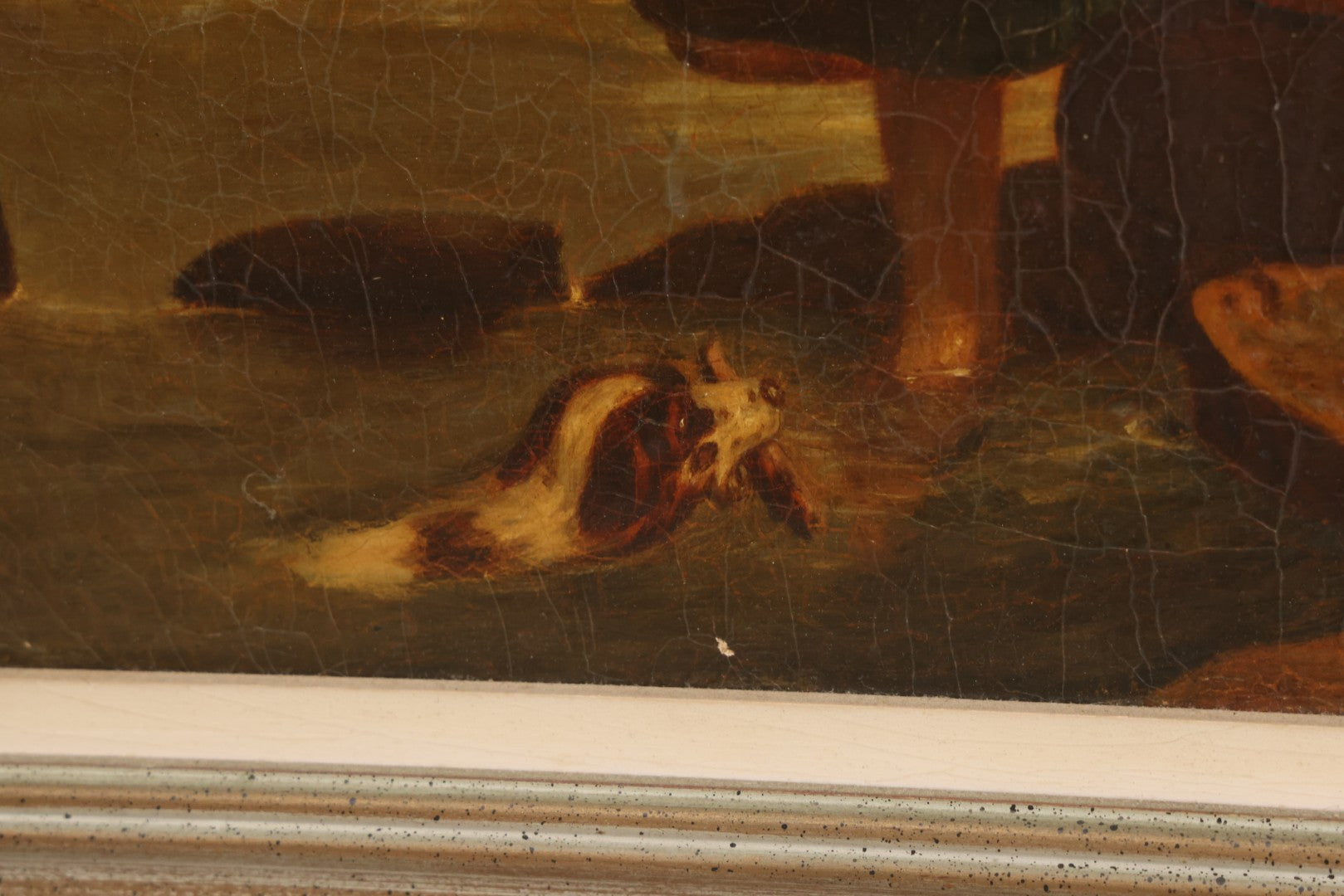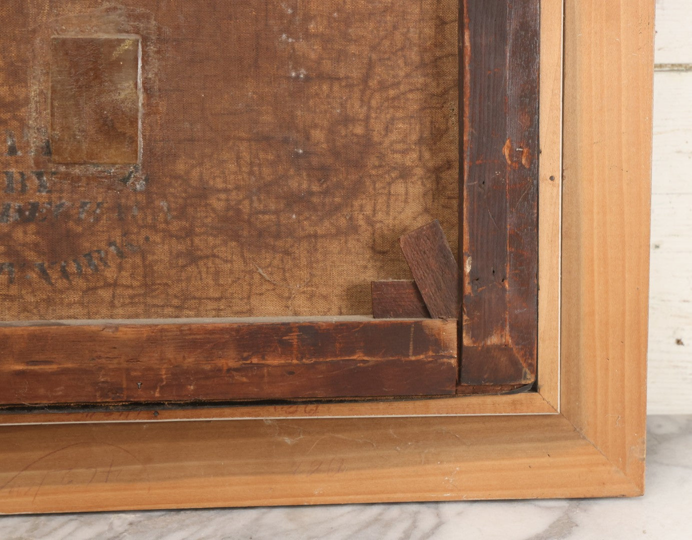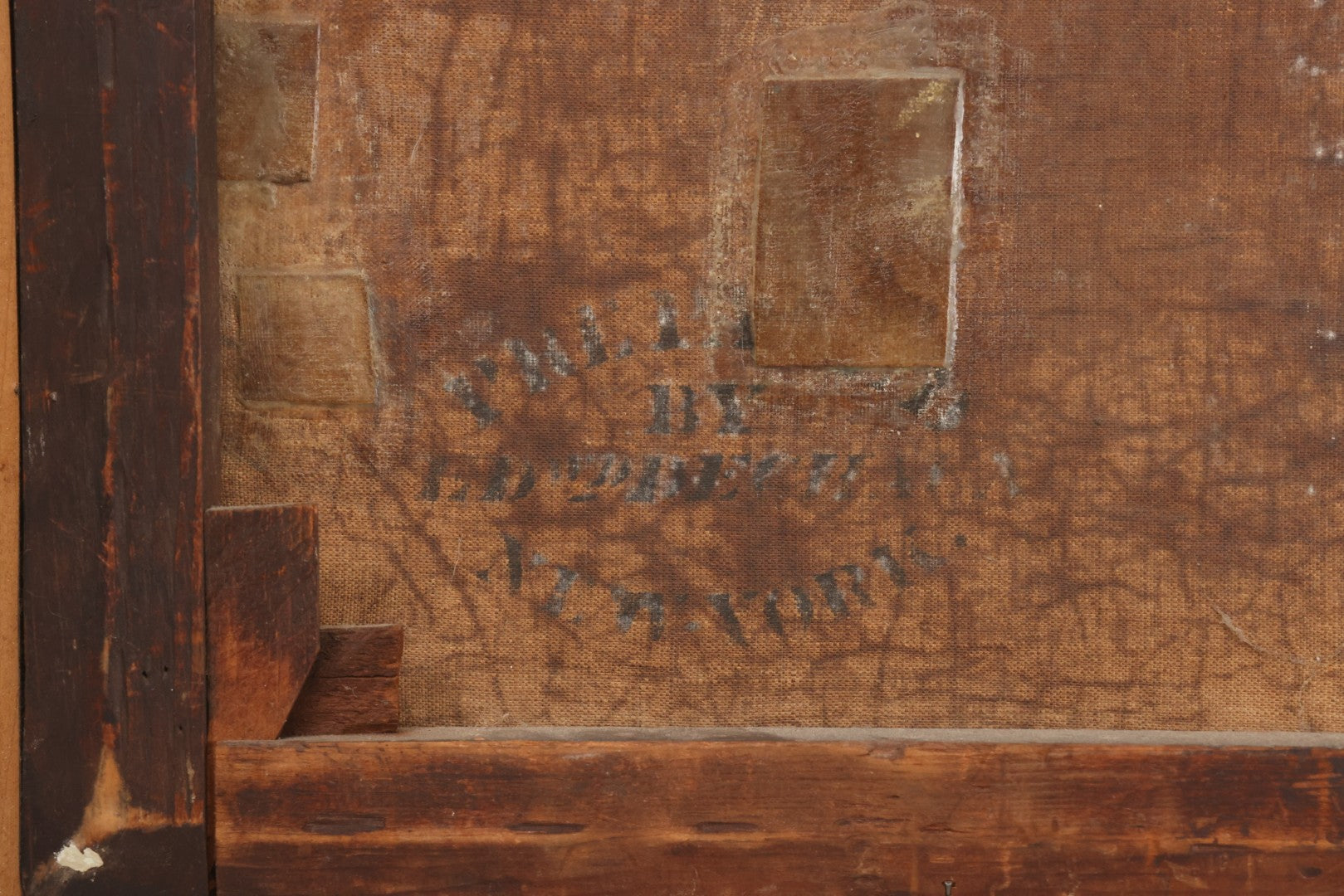Pre-Auction Notes: This painting has many repairs, as seen on verso. Small losses to paint throughout. Canvas bears New York stenciled label. Framed in the 20th century. Original stretcher.