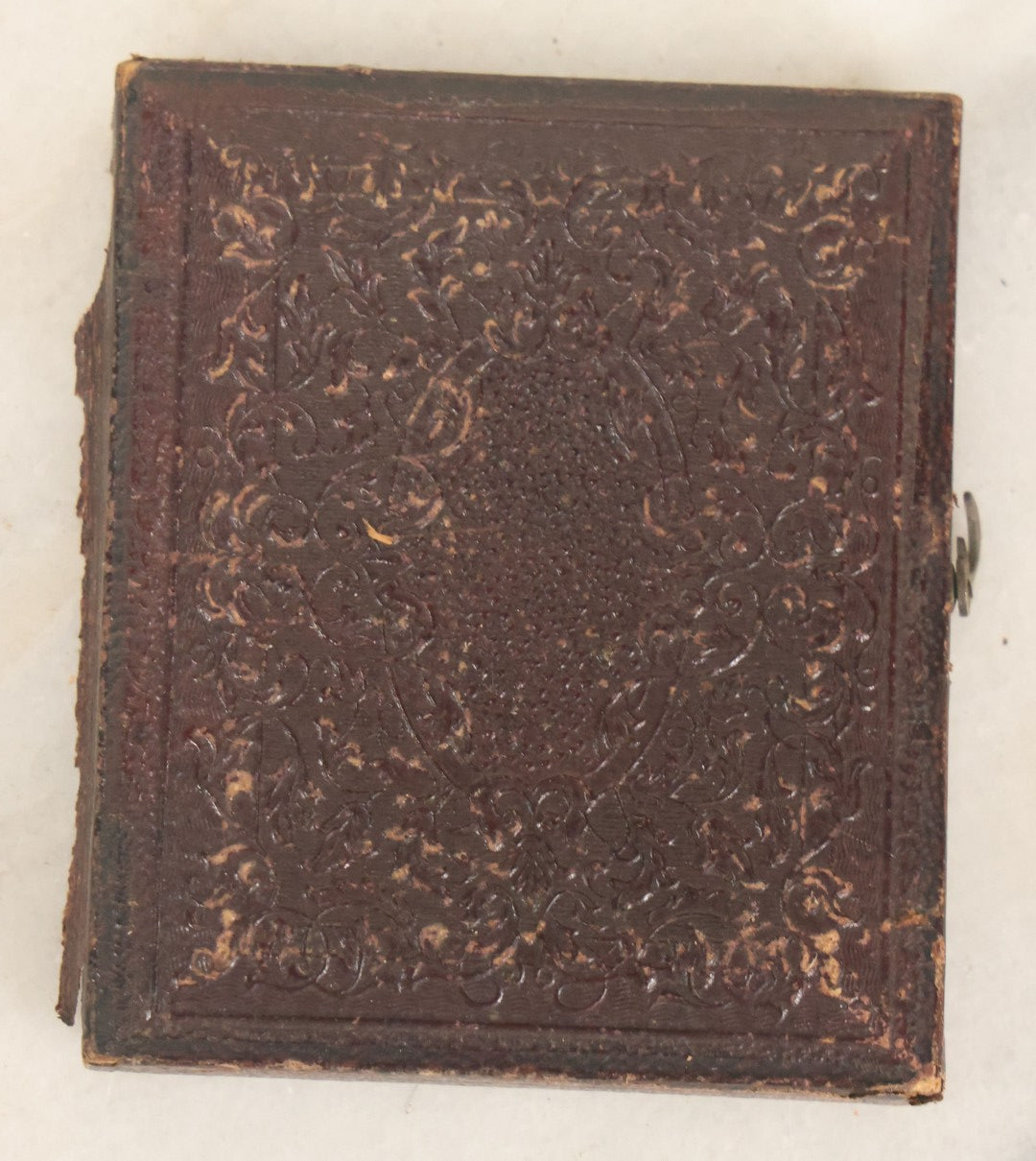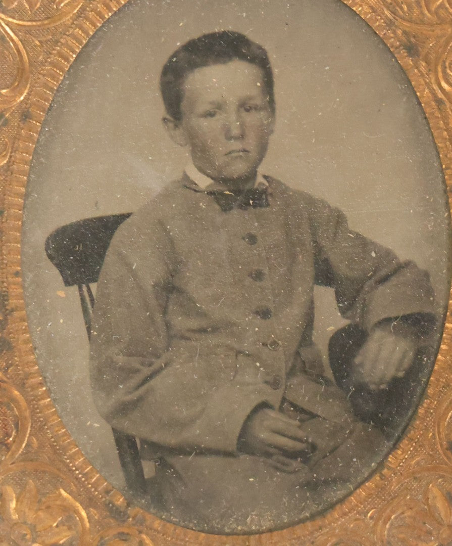 Lot 089 - Antique 1/9th Plate Tintype Photograph Of A Young Boy In A Gray Suit With A Bowtie, In Half Leatherette Case