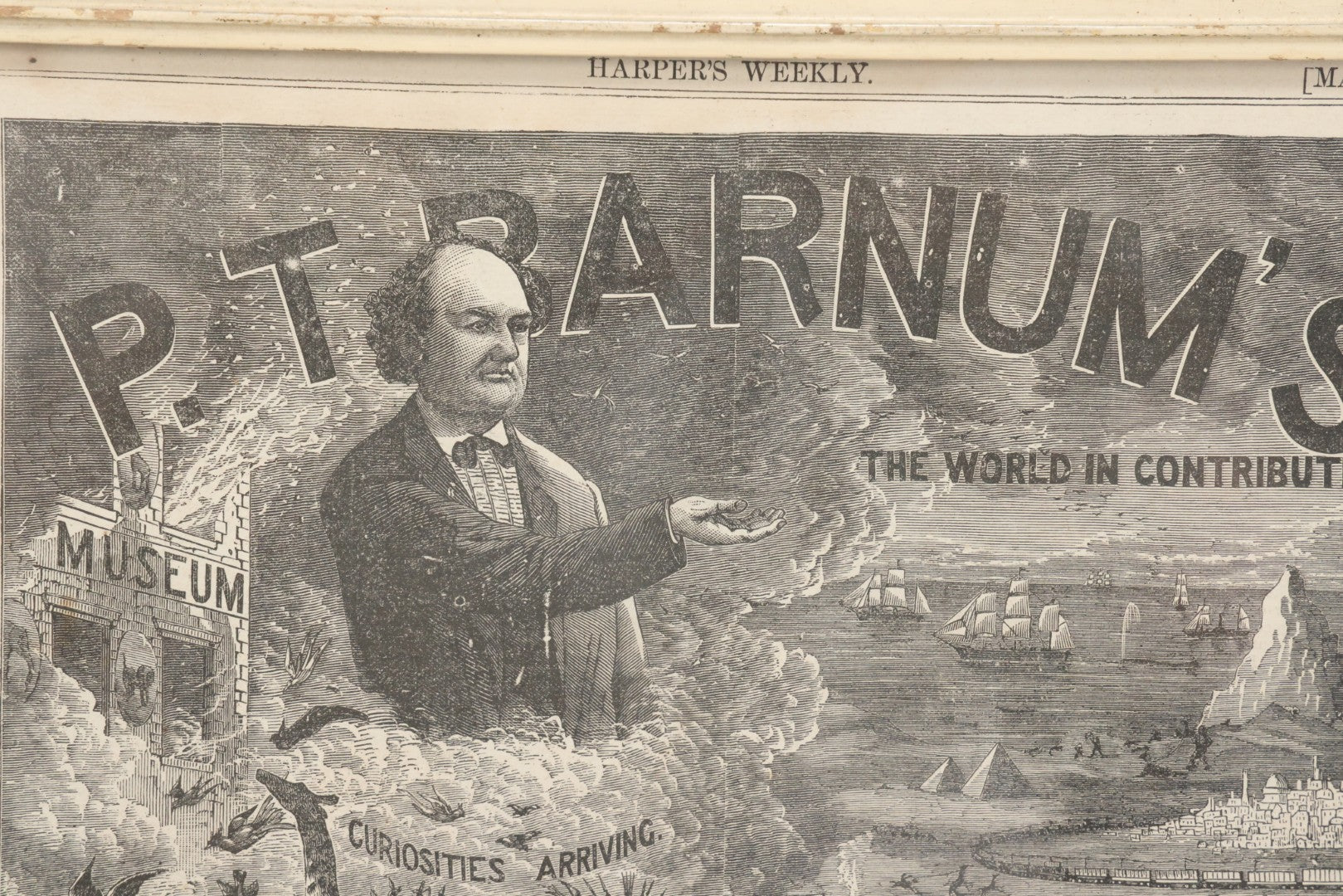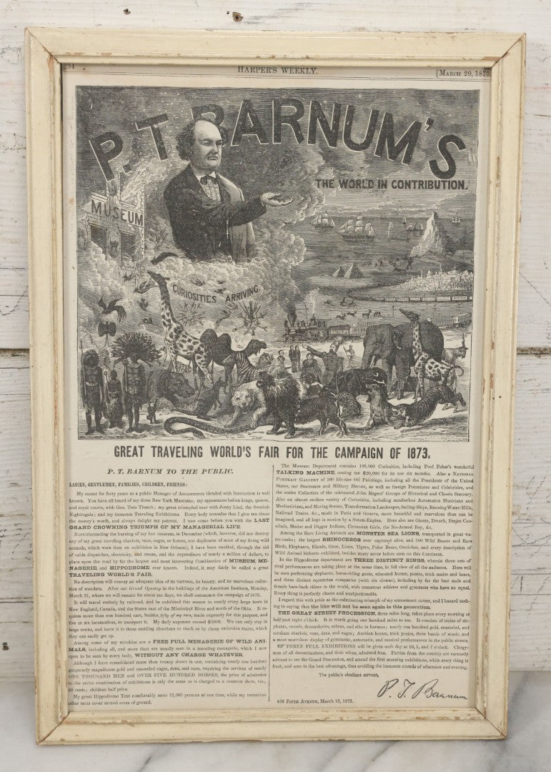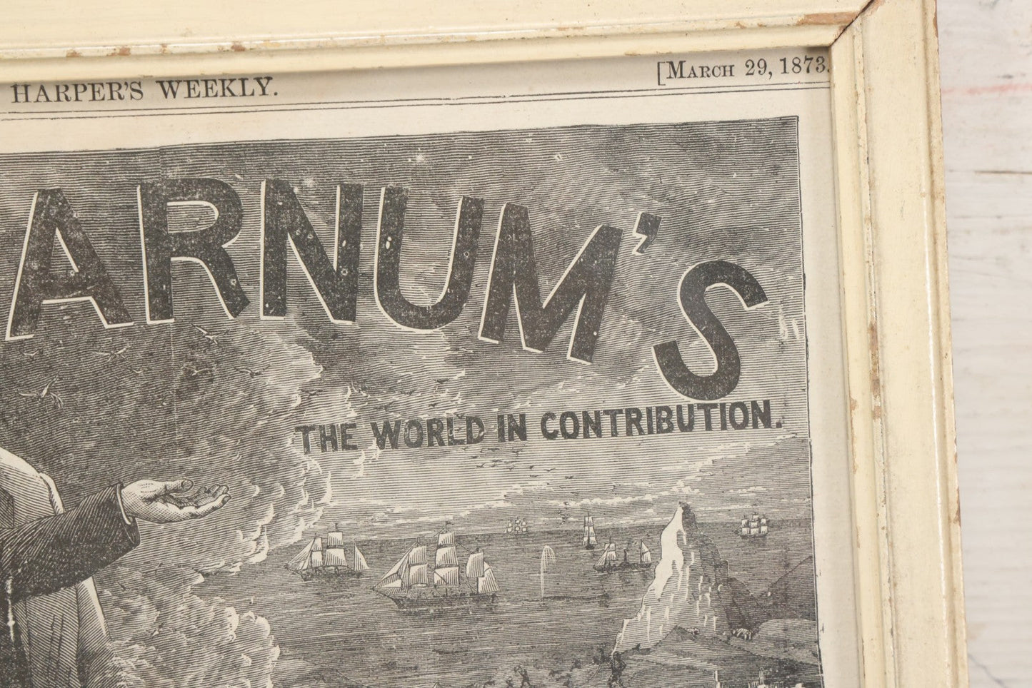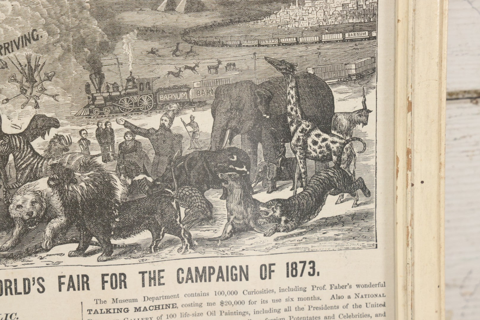 Lot 046 - Antique Advertisement Clipping For P.T. Barnum's Great Traveling World's Fair For The Campaign Of 1873, From Harper's Weekly Magazine, March 29th, 1873 In Frame, 11" x 16-1/4"