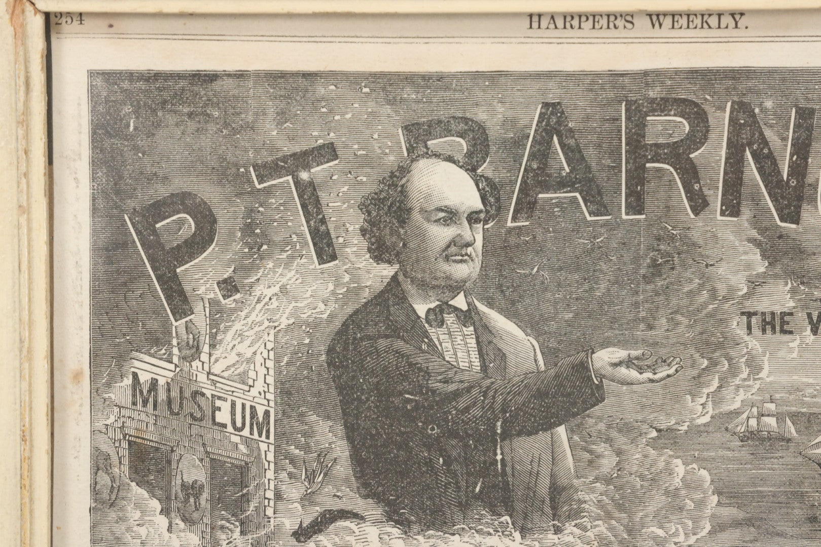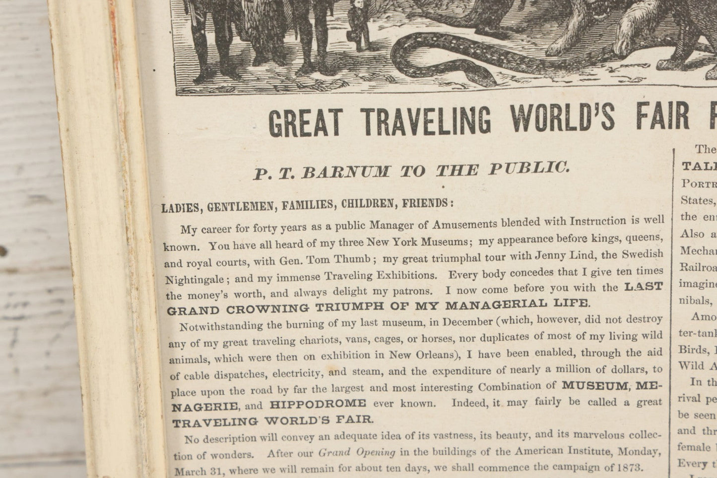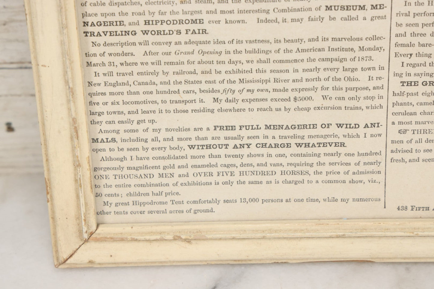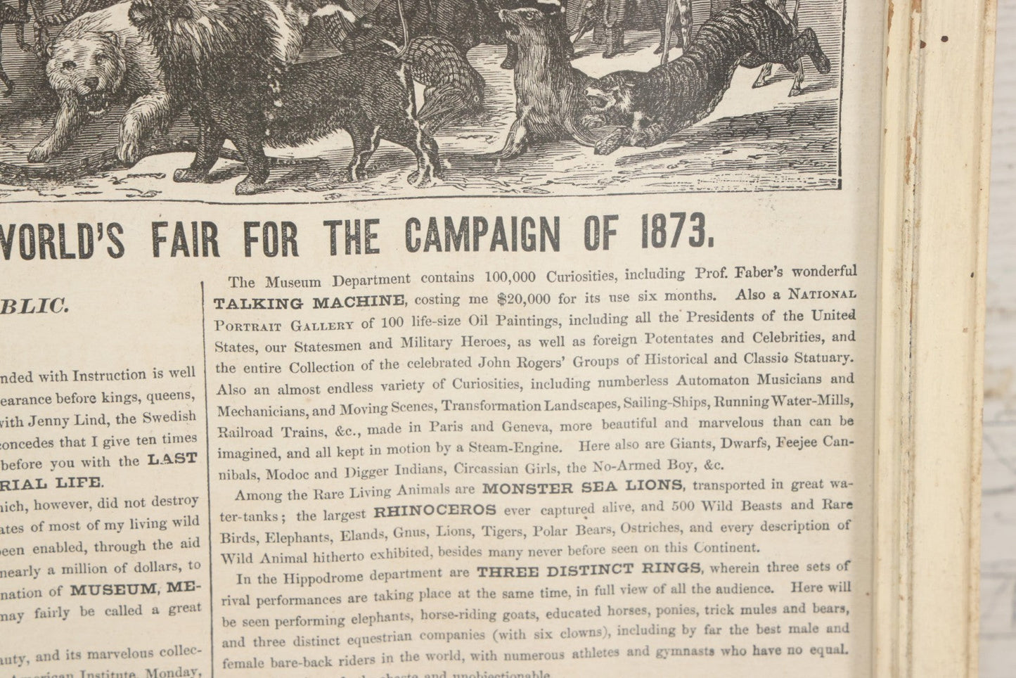 Lot 046 - Antique Advertisement Clipping For P.T. Barnum's Great Traveling World's Fair For The Campaign Of 1873, From Harper's Weekly Magazine, March 29th, 1873 In Frame, 11" x 16-1/4"