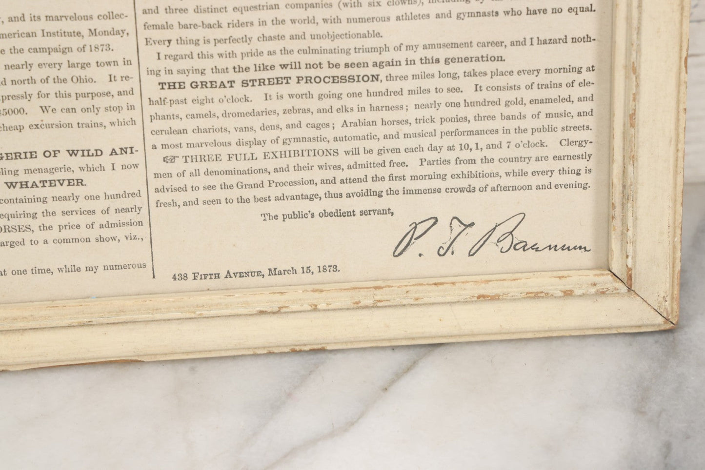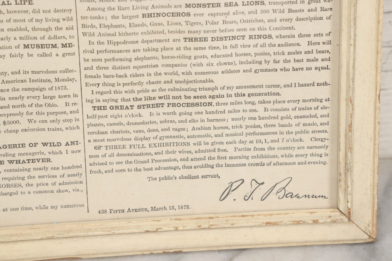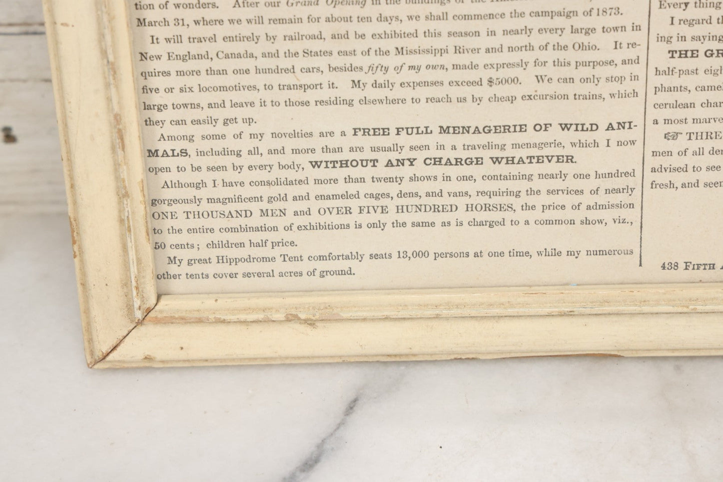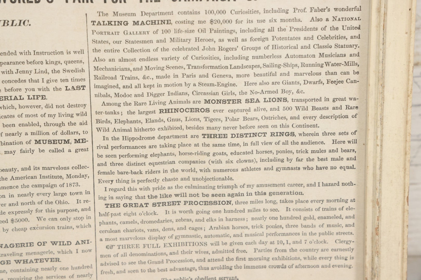 Lot 046 - Antique Advertisement Clipping For P.T. Barnum's Great Traveling World's Fair For The Campaign Of 1873, From Harper's Weekly Magazine, March 29th, 1873 In Frame, 11" x 16-1/4"
