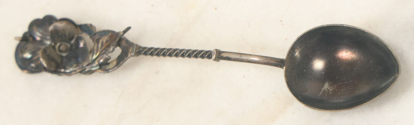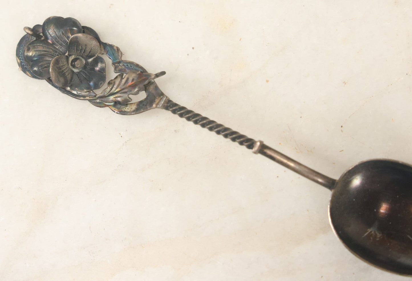 Lot 072 - Antique Art Nouveau Sterling Silver Spoon With Pansy Flower Handle, Twisted Stem Design
