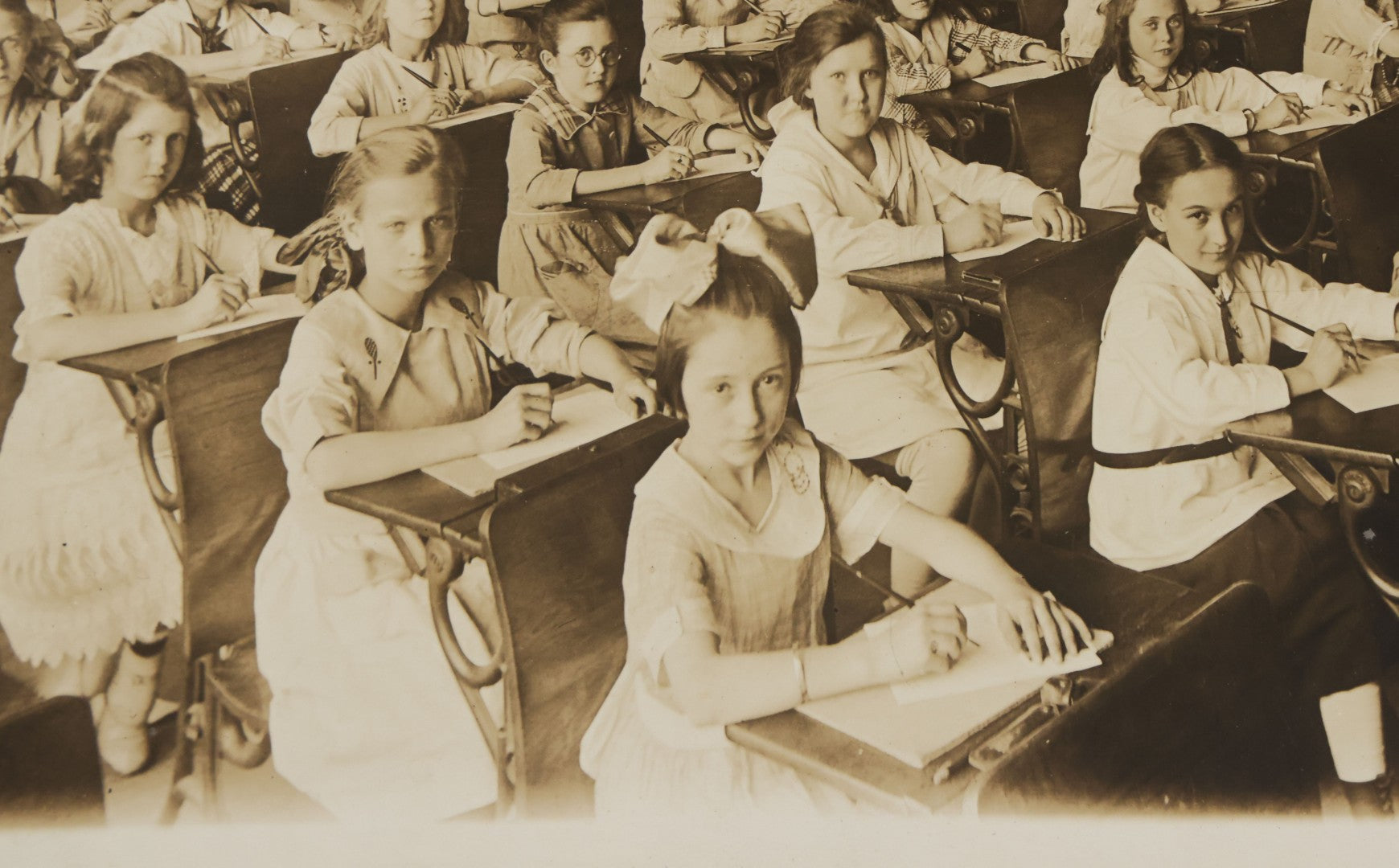 Your absentee bid for Lot 067 - Antique Boarded Interior Schoolroom Photograph Of Class Of Girls And Their Teacher (6th Grade), April 29, 1921, Partial Identification On Verso was successfully submitted—thank you for bidding with us!
