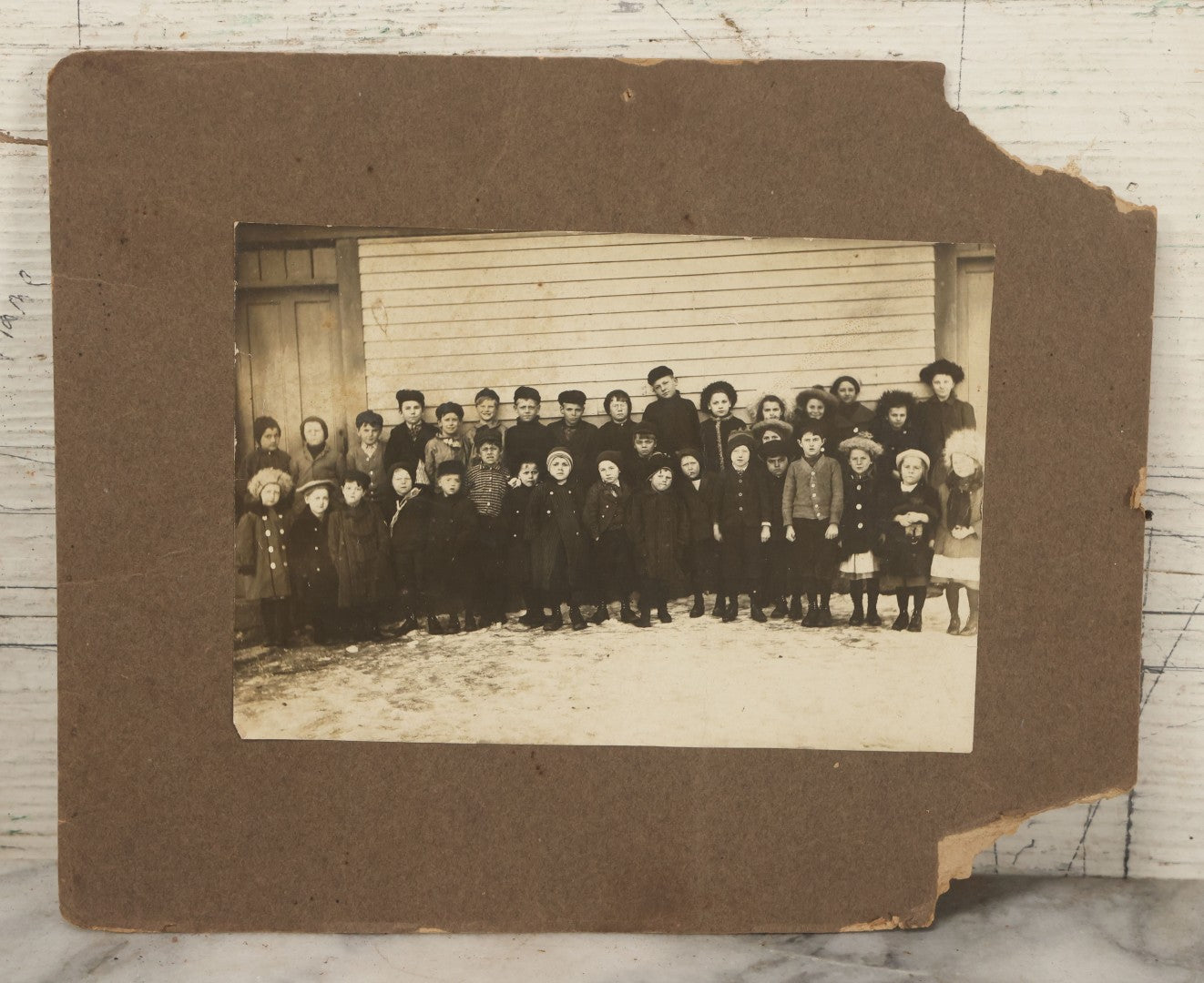 Lot 056 - Antique Boarded Photograph Of A Group Of Bundled Up School Children Posing Outdoors In The Winter, C.H. Dibble, Photographer, Milford, Massachusetts