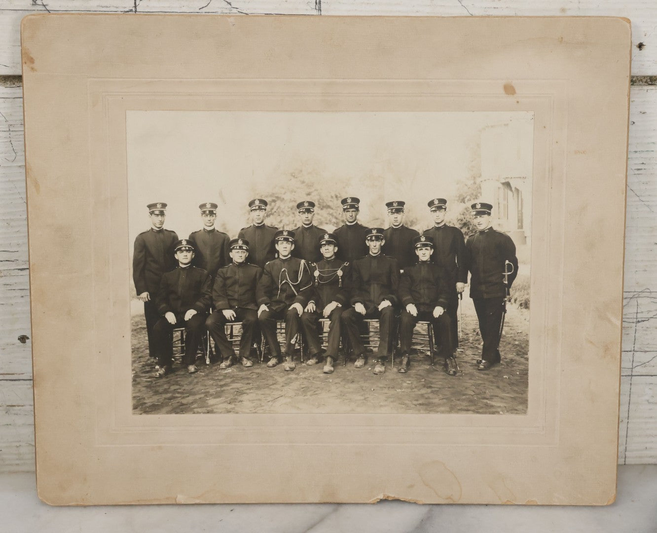 Lot 069 - Antique Boarded Photograph Of Group Of Soldiers, Partial Identification On Verso, George St. Jean Photographer, Manchester New Hampshire