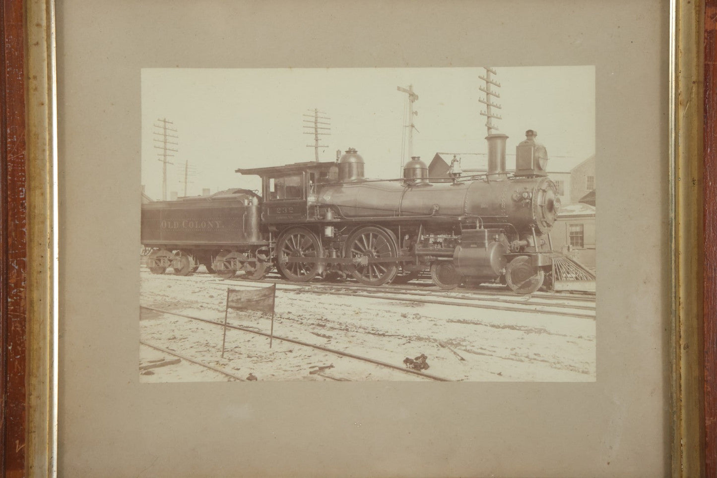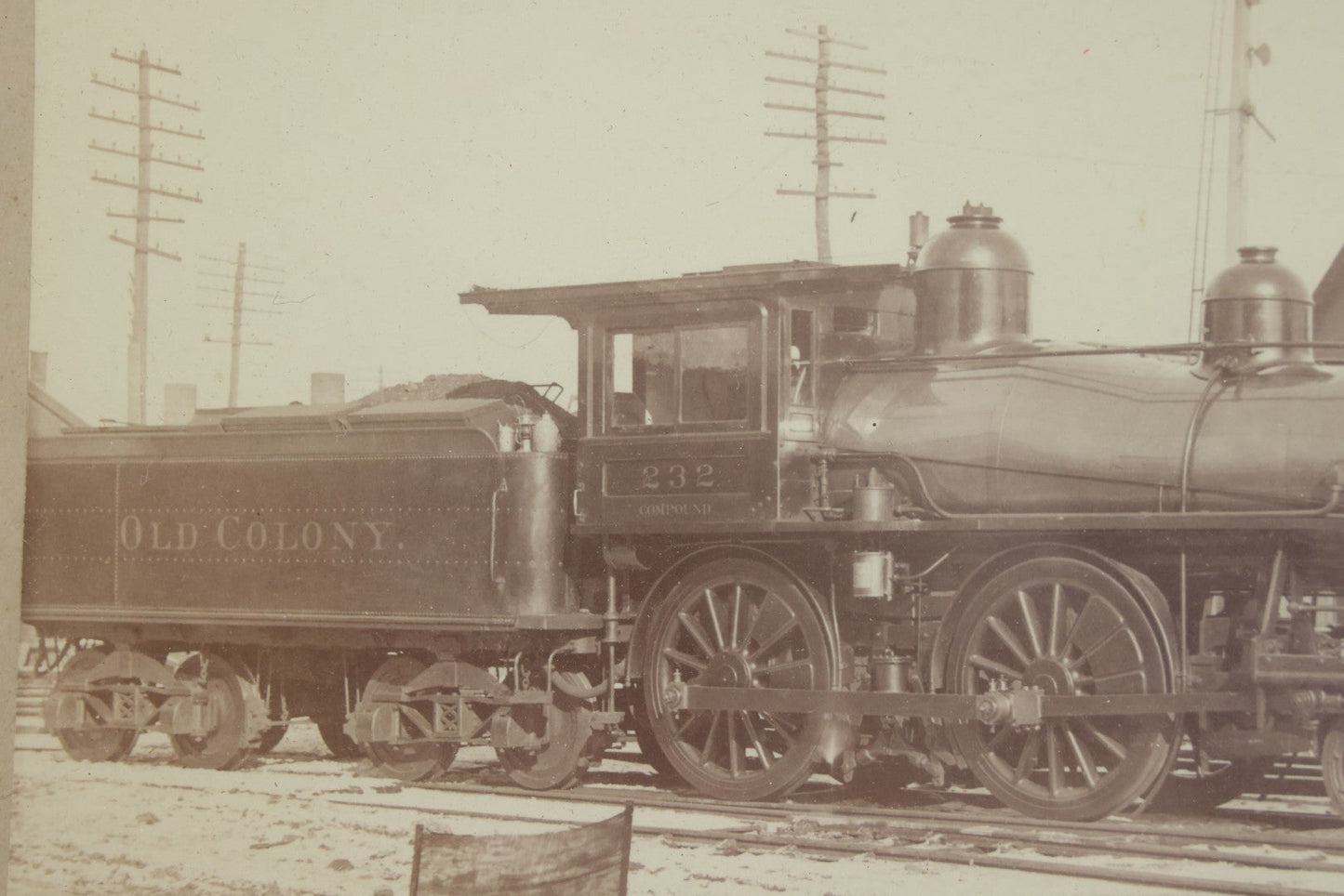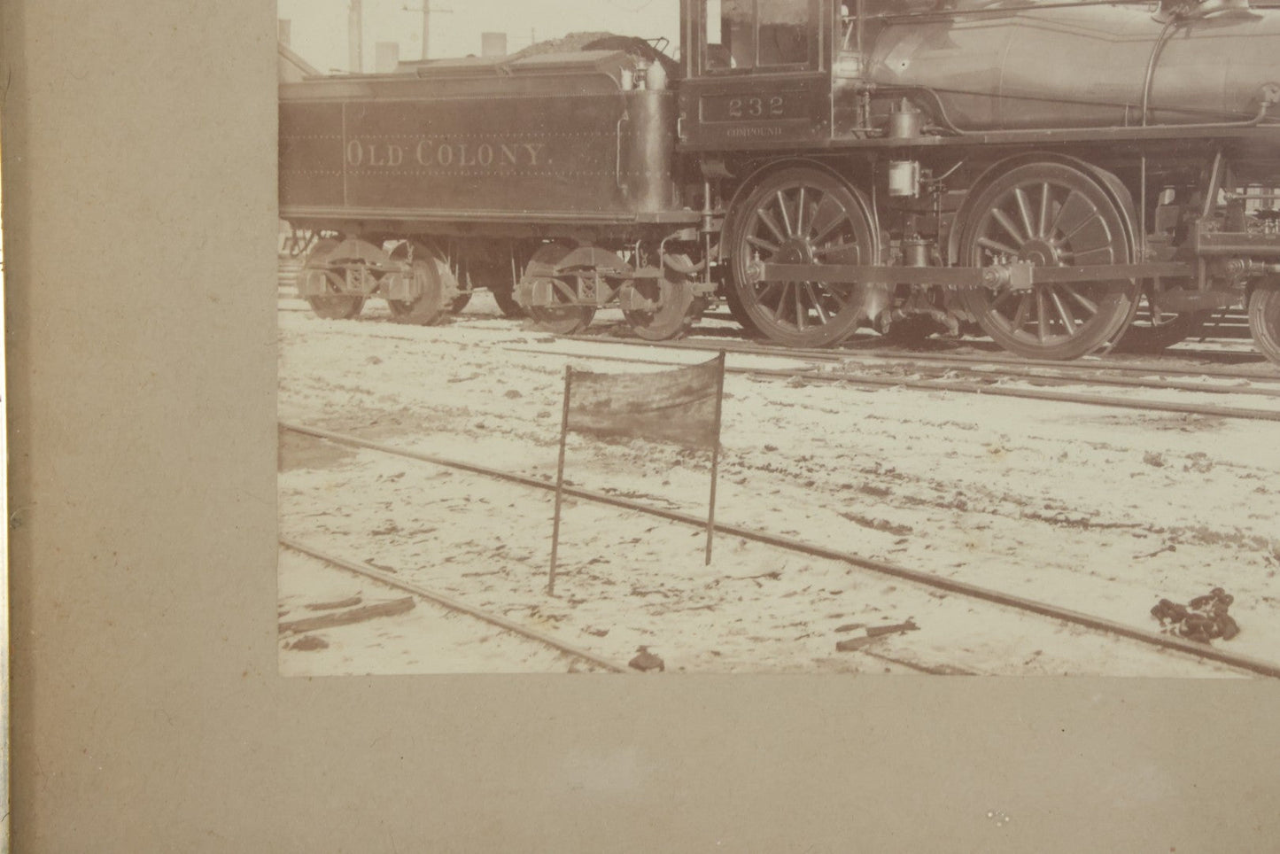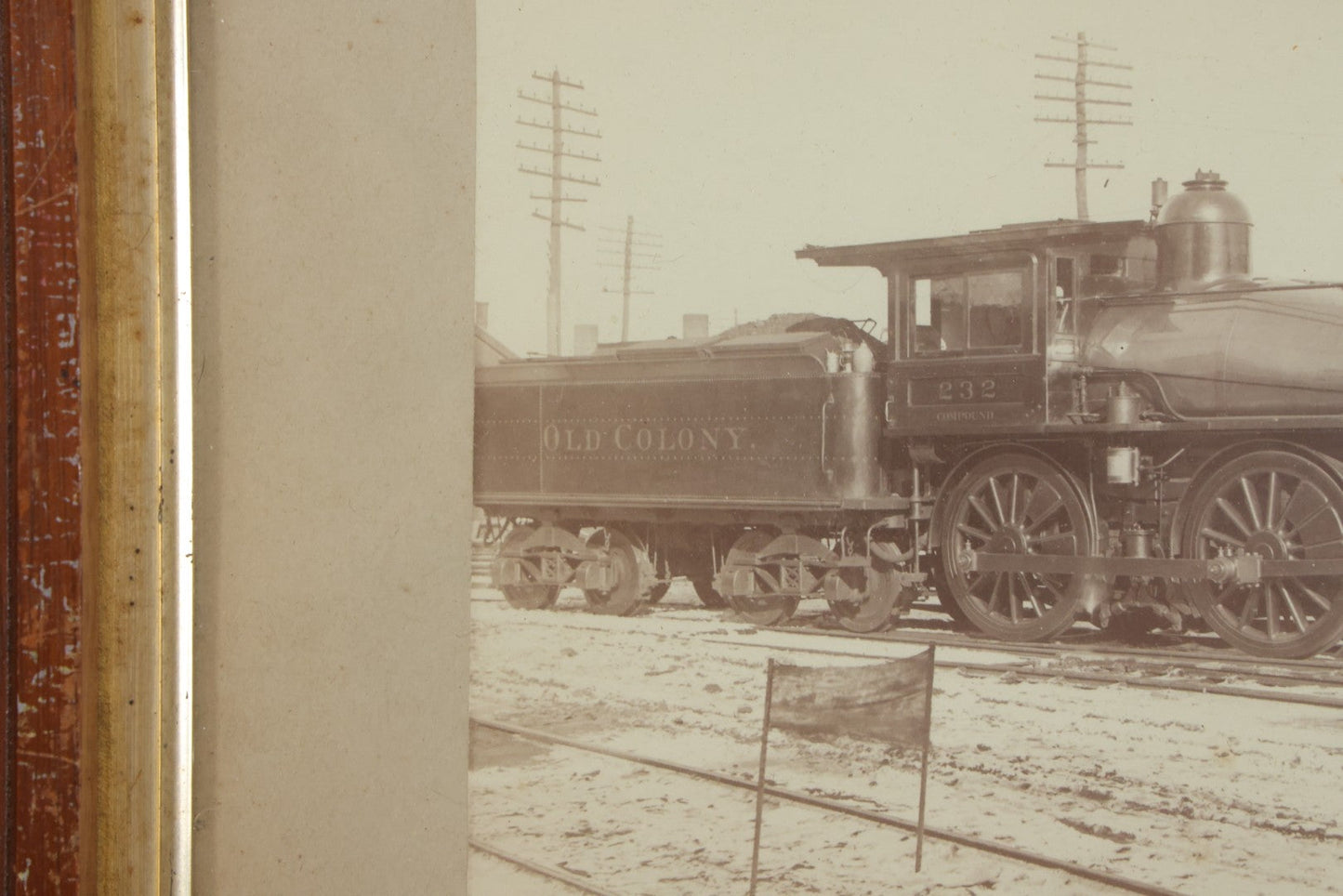 Lot 053 - Antique Boarded Photograph Of Locomotive No. 232, Old Colony Railroad, In Frame, 15-1/4" x 13-1/8"